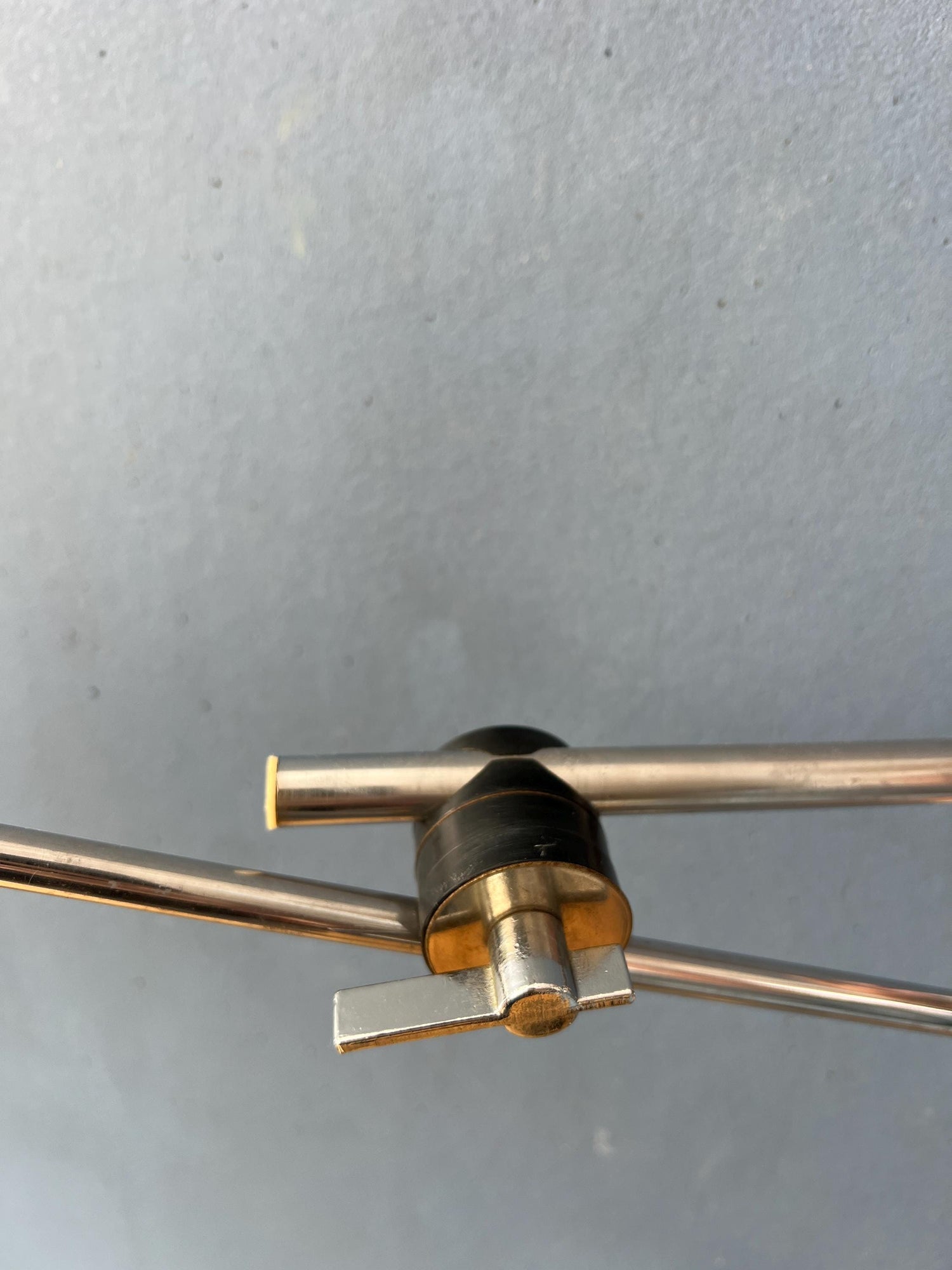 Often sought after Herda diabolo swing arm wall lamp with beige shade. The shade can be turned in different directions and the arm can be positioned in any way desirable where the arms meet. The lamp can swivel left and right from the wall mount. The lamp requires an E27 /26 (standard) lightbulb and currently has an EU-plug.