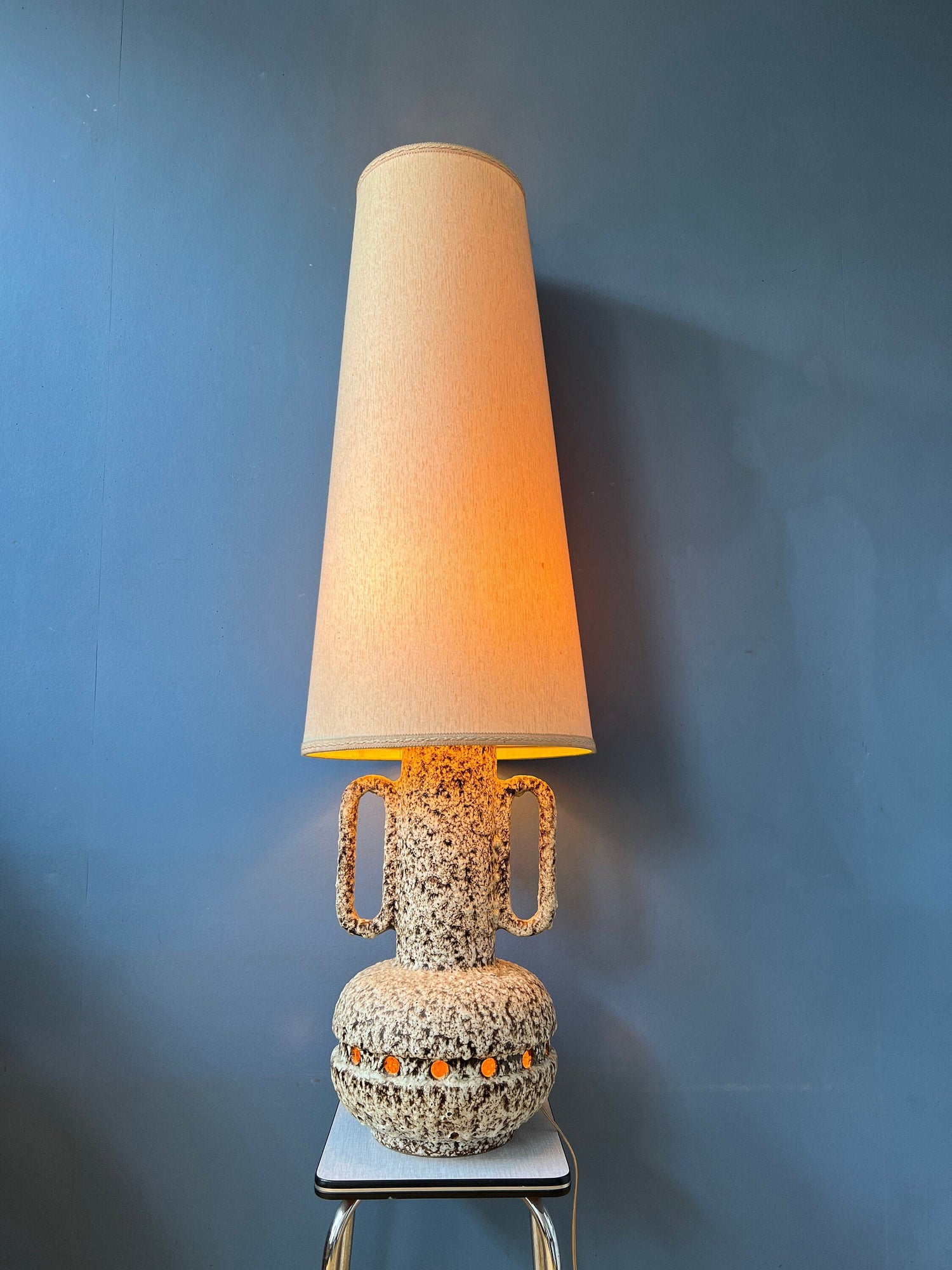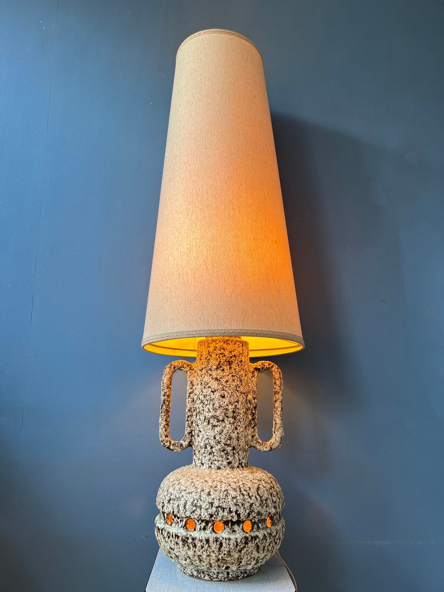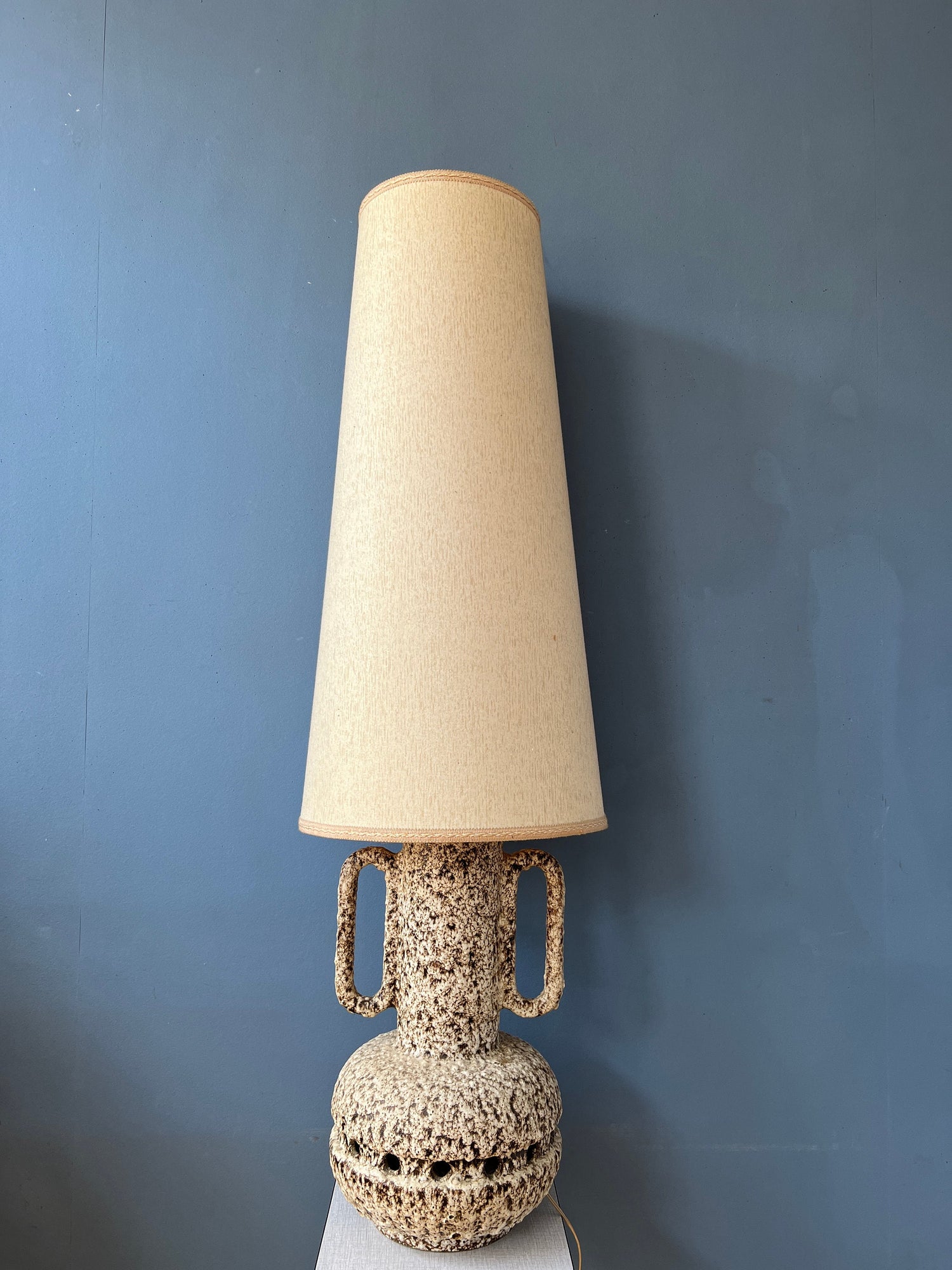 Beige West Germany Fat Lava Ceramic Floor Lamp with Large Beige Shade