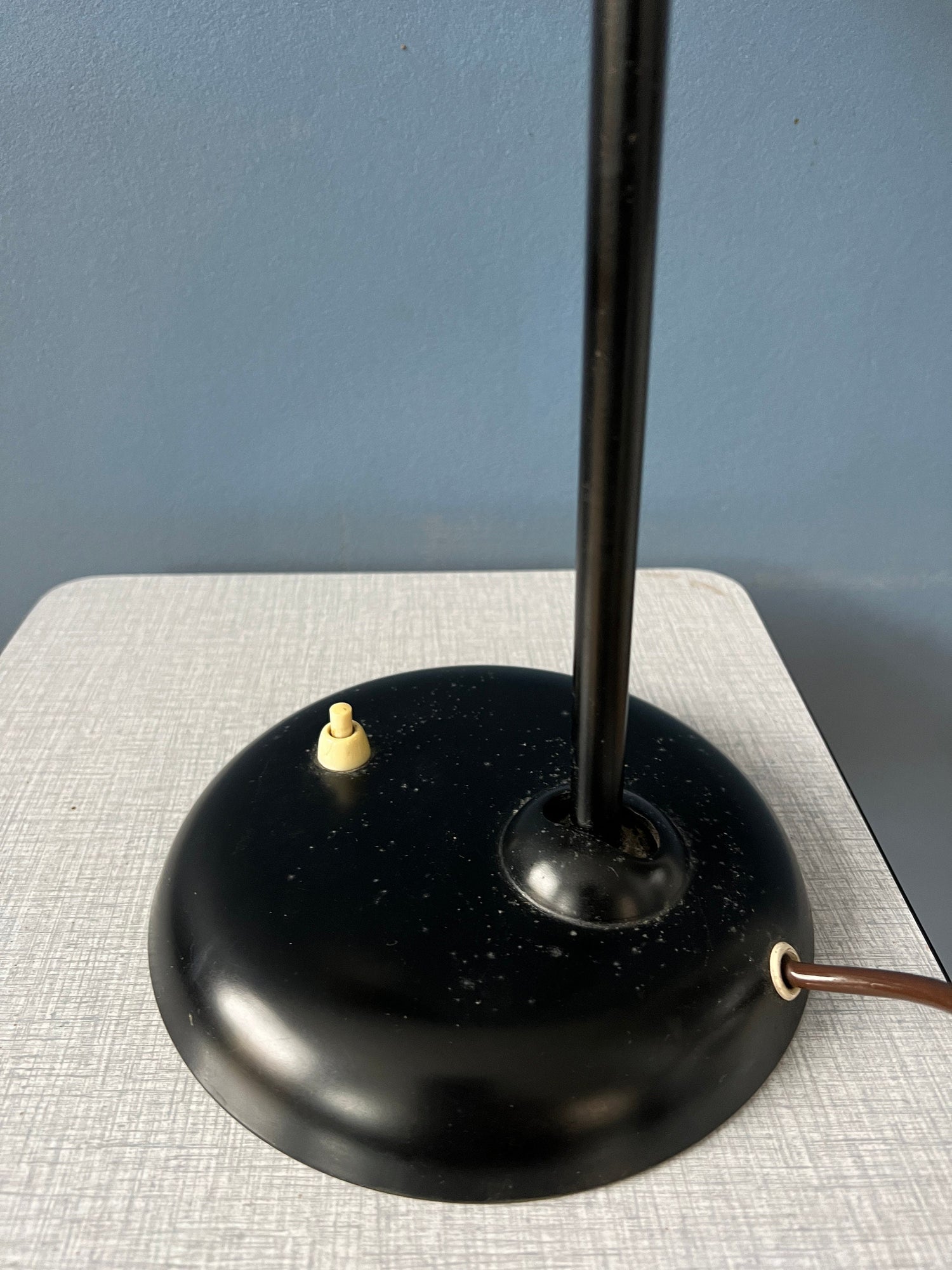 Black Christian Dell table lamp for Kaiser Leuchten. The lamp is made out of metal. The lamps has a switch on the base. It requires a E27/26 bulb and currently has a EU-plug (usable outside EU with plug-converter).