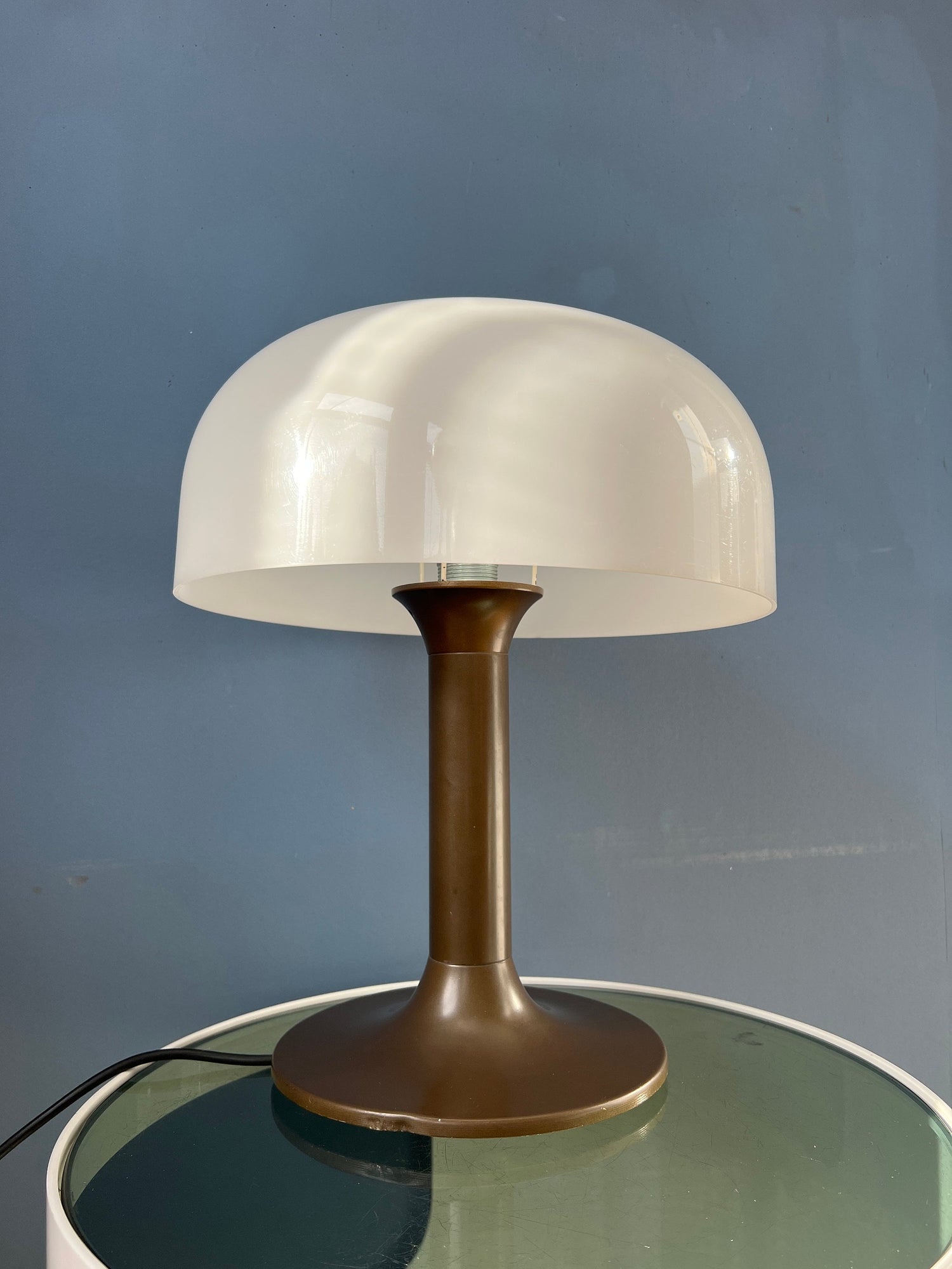 Brown and White Space Age Mid Century Mushroom Table Lamp