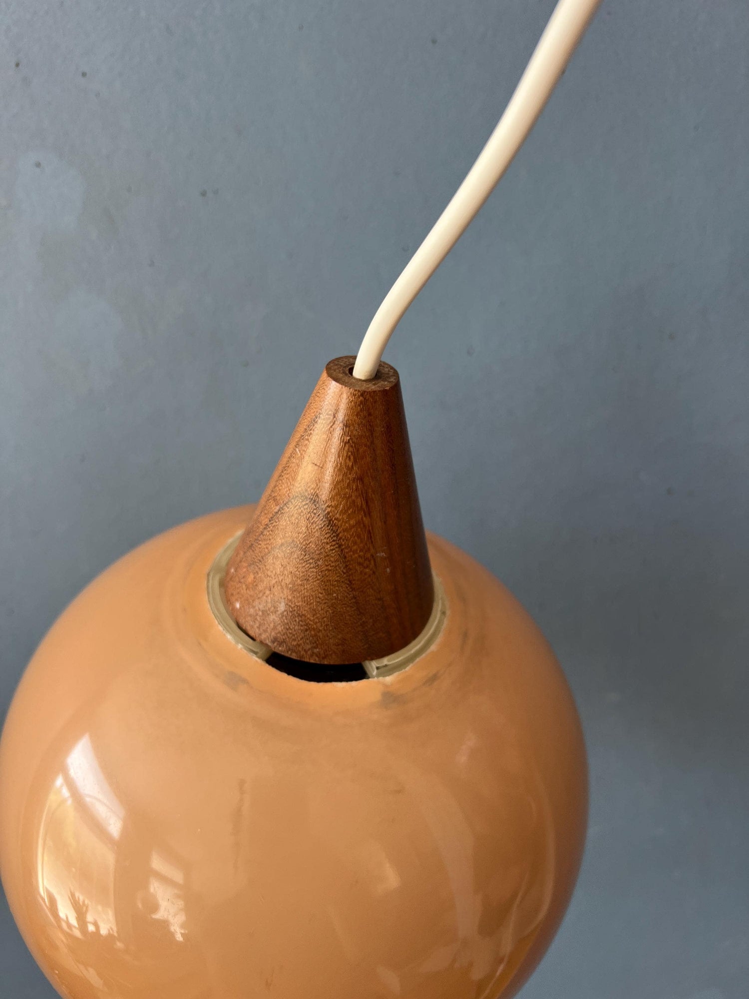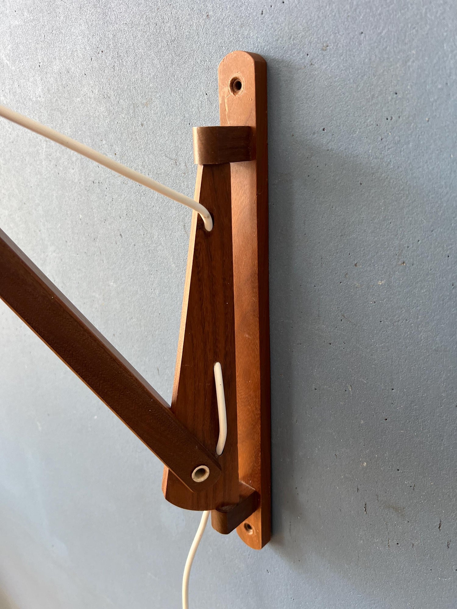 Danish Teak Wood Fishing Rod Wall Lamp with Plexiglass Mushroom Shade