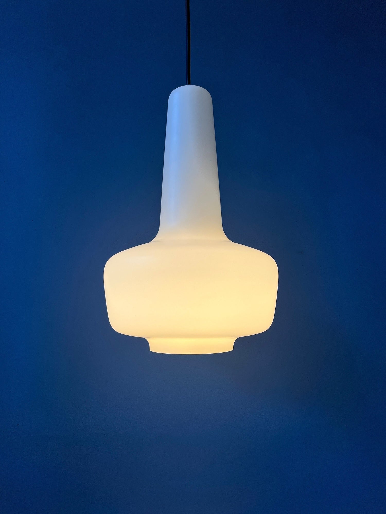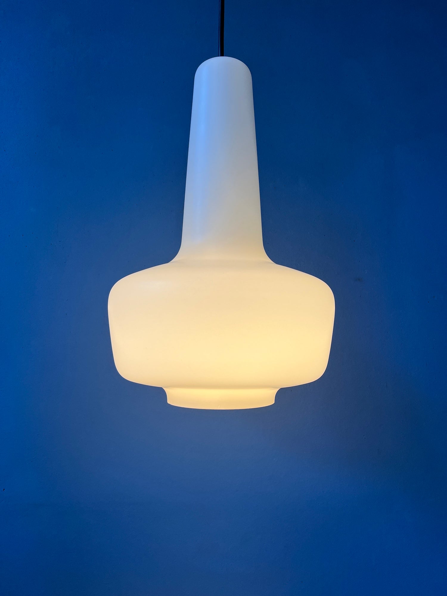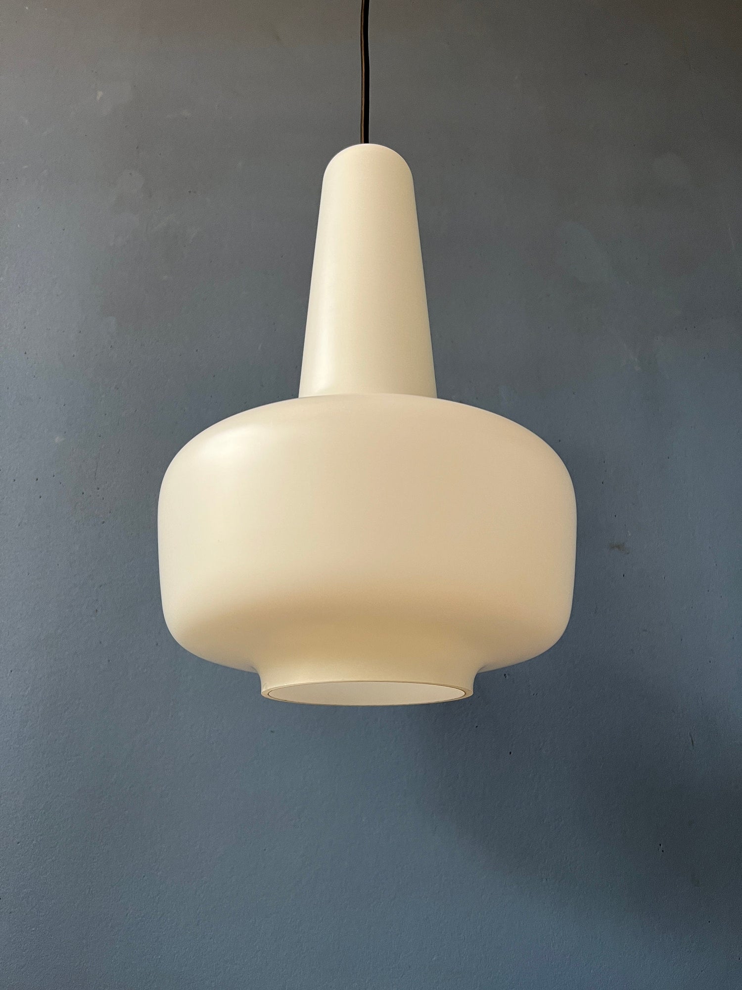 Fog & Mørup White Kreta Pendant Lamp / Holmegaard Mid Century Glass Light Fixture