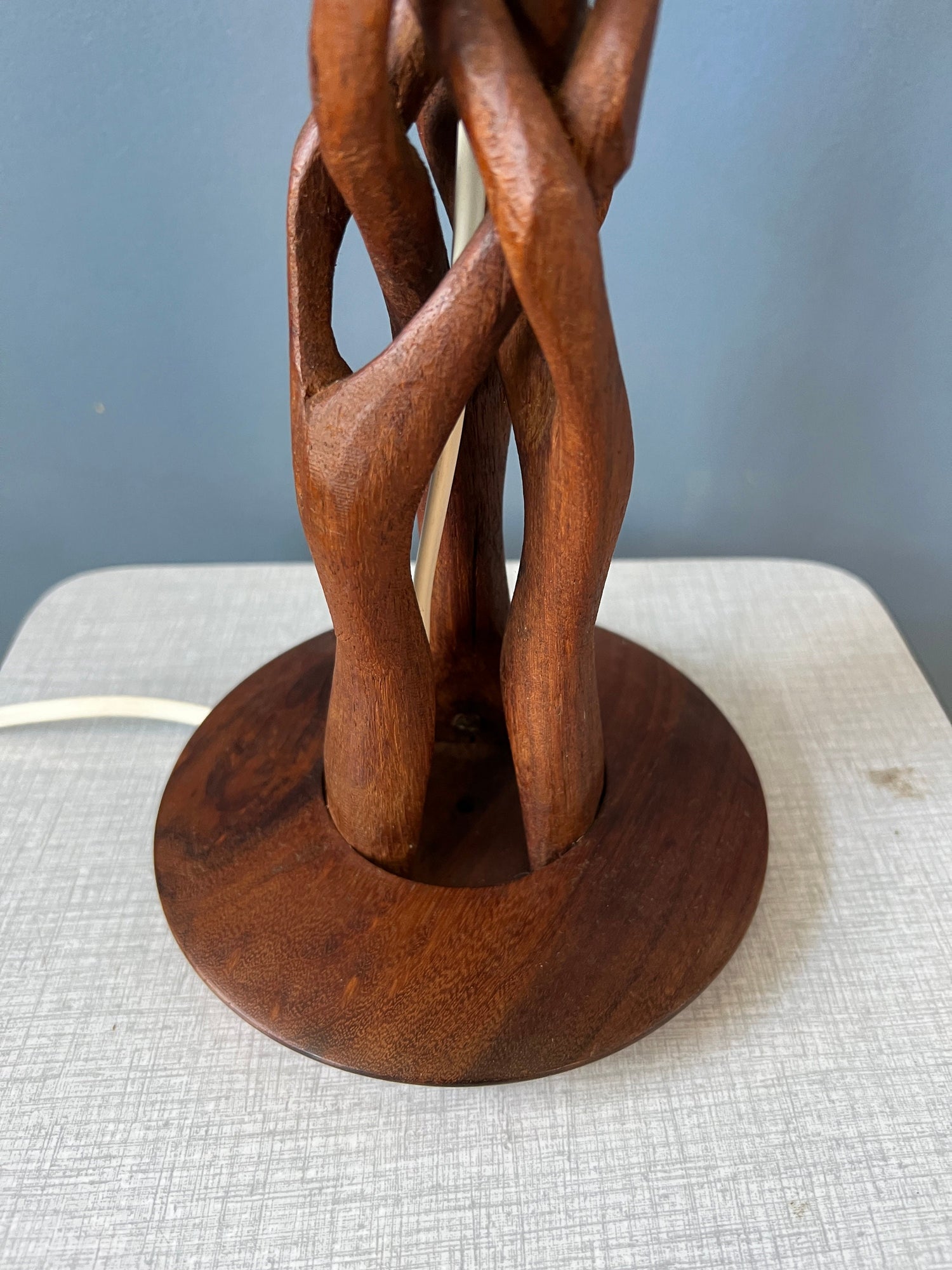 Hand-Carved Wooden Table Lamp with Art Deco Style Shade
