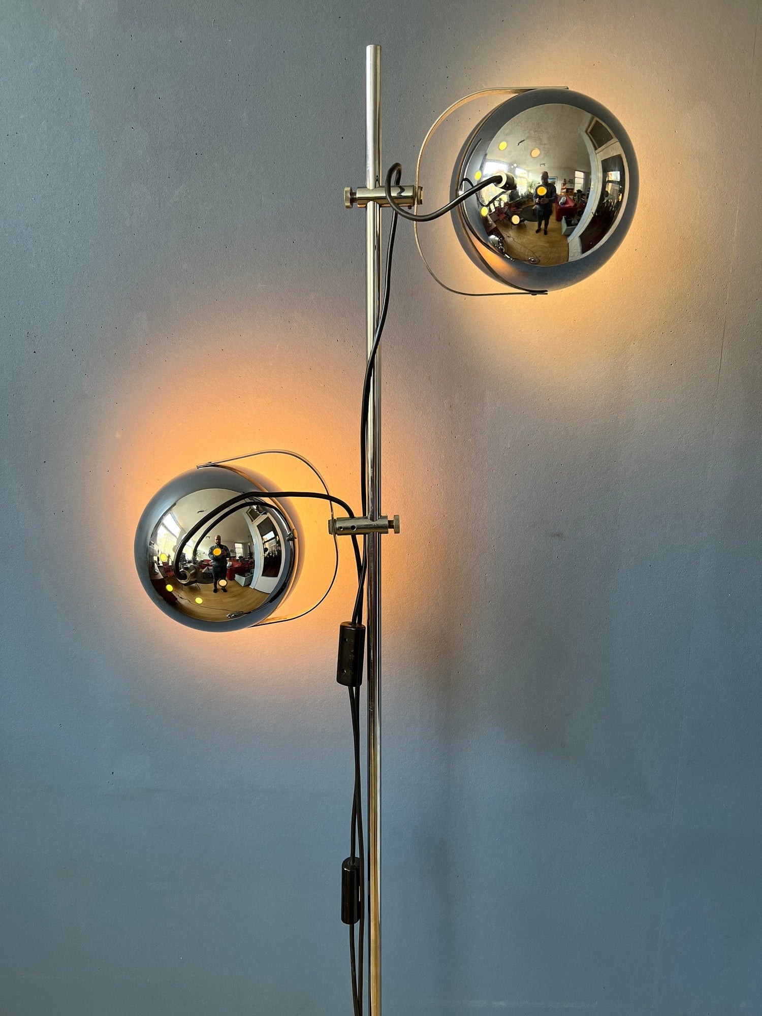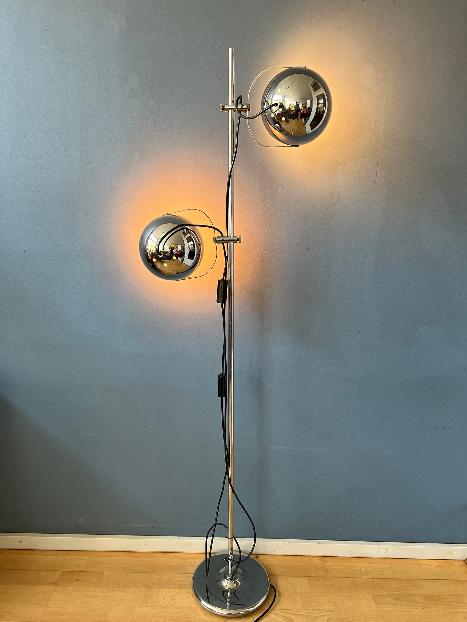 Mid-Century Chrome Herda Eyeball Floor Lamp | Space Age Light | Retro 70s Lighting