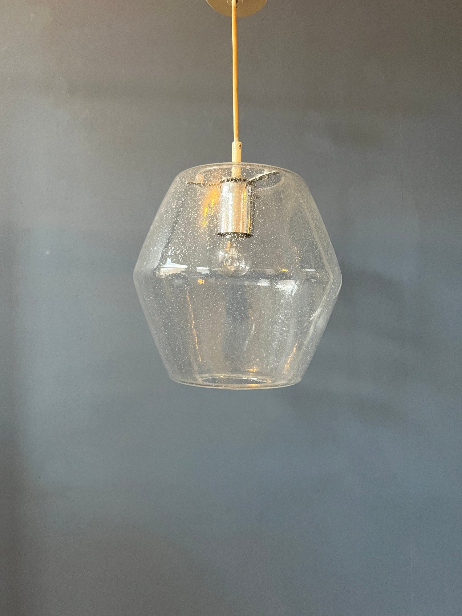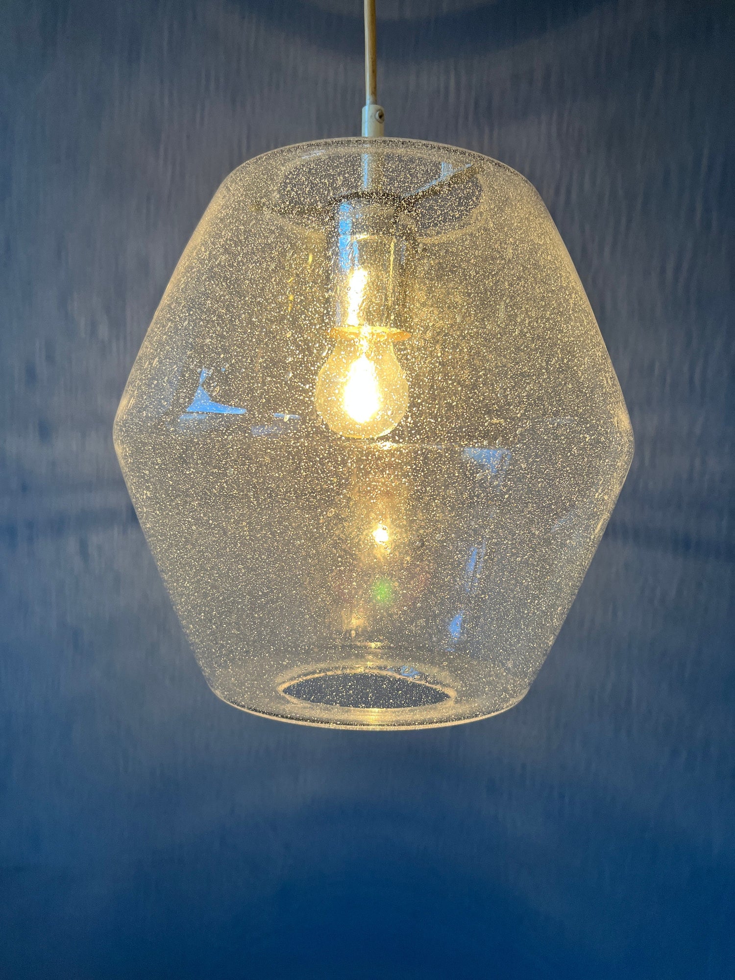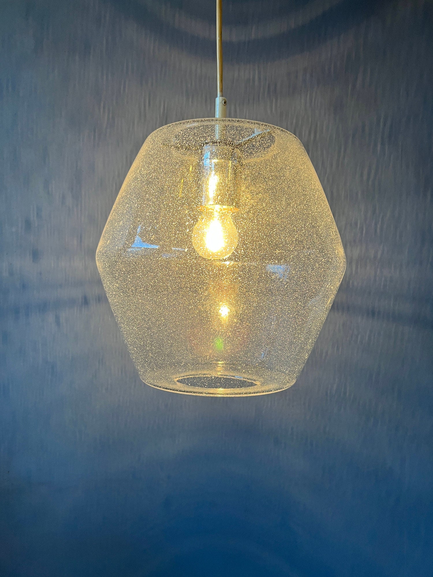 A very rare rare glass pendant by RAAK, model 'Kristall B1217'. This lamp is made of high-quality Venetian glass in a hexagon shape. The christal structure of the glass spreads the light nicely.