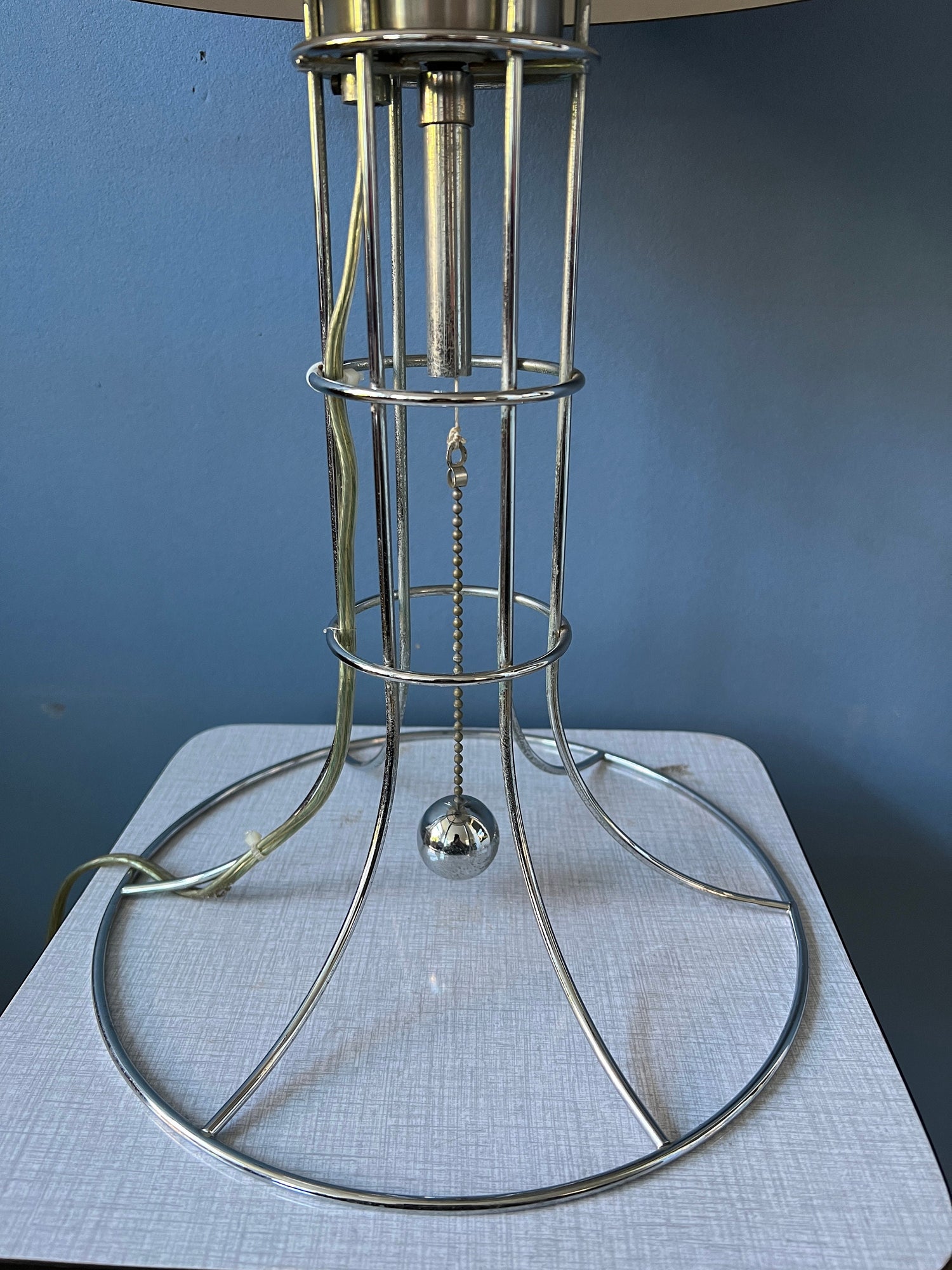 Very good. The shade has a few vague scratches, see last picture. The chrome frame has some light patina.
