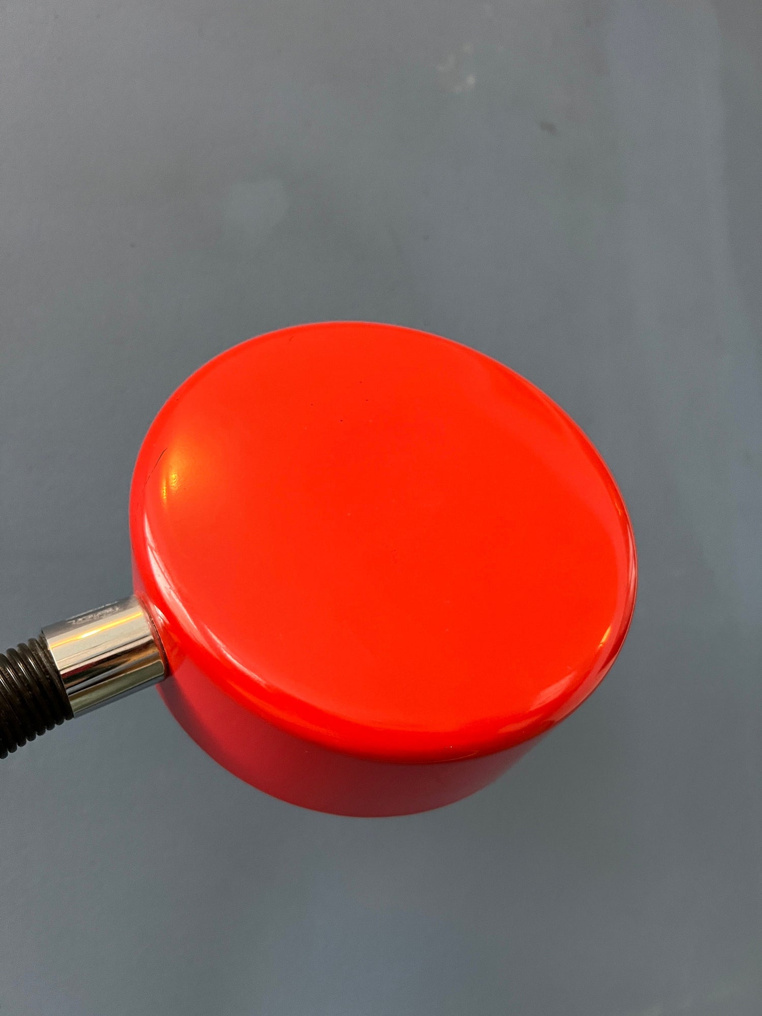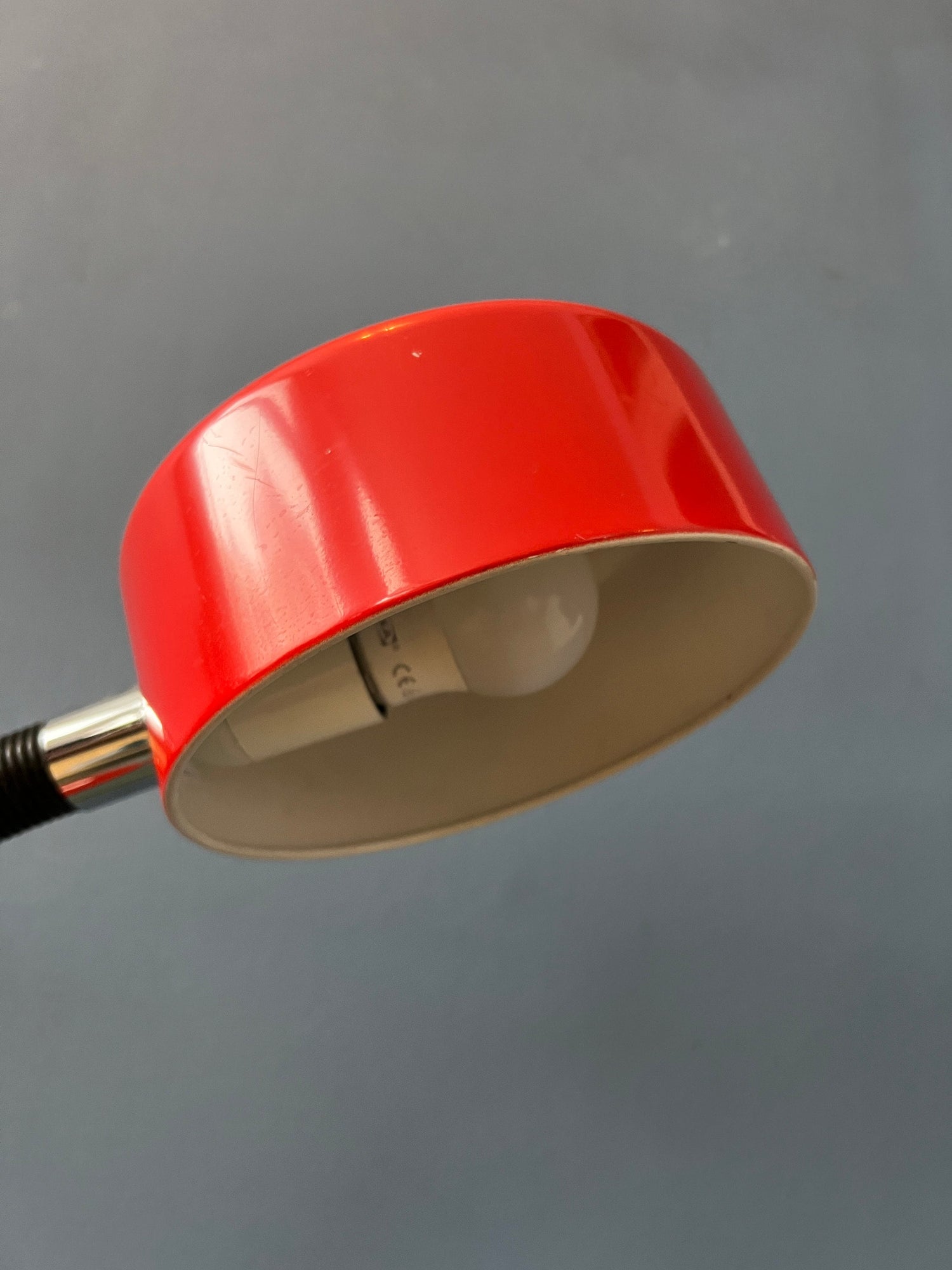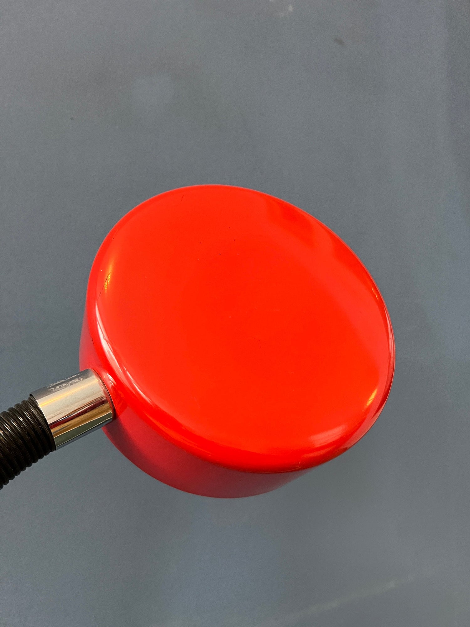 Big red Cosack space age table lamp with flexible arm. The arm and shade can be positioned in any way desirable, see pictures. Also the shade itself be repositioned. The lamp requires one E27/26 (standard) lightbulb and currently has an EU plug.