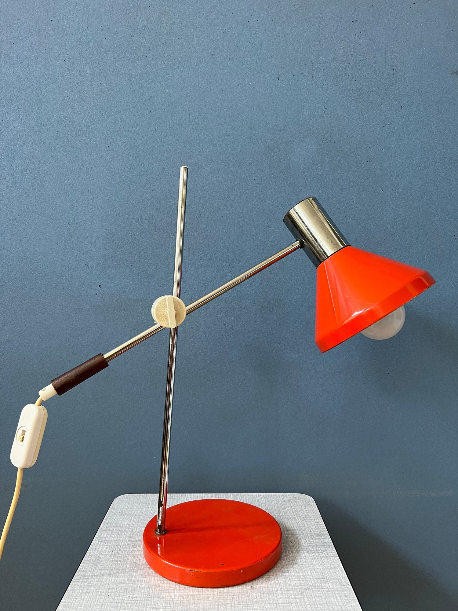 Red Mid Century Desk Lamp - Swing Arm Table Lamp - Chrome Space Age Light