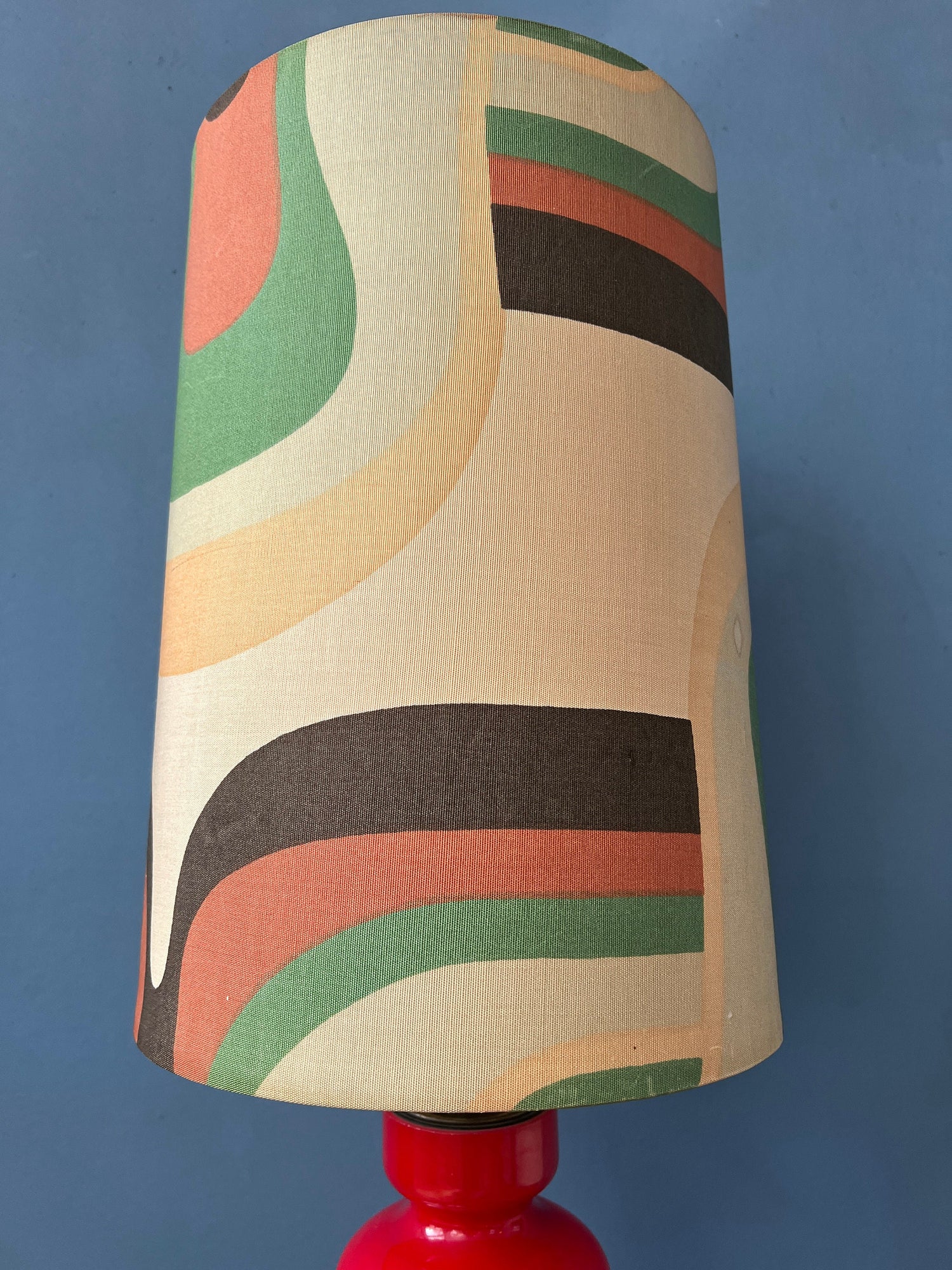 Red Mid Century Space Age West Germany Glass Table Lamp with Textile Shade