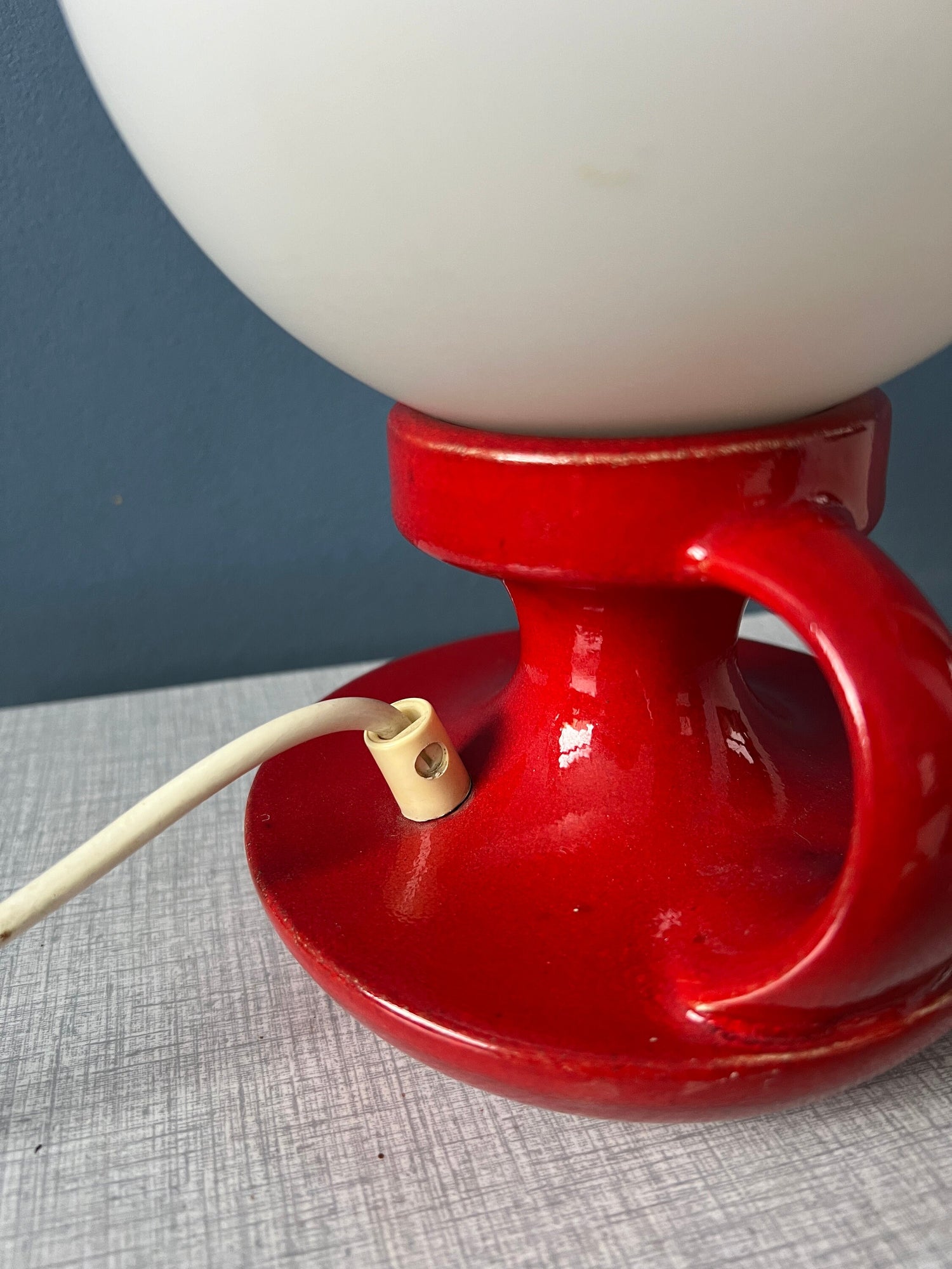 Red Mid Century West Germany Ceramic Table Lamp with White Opaline Glass Shade