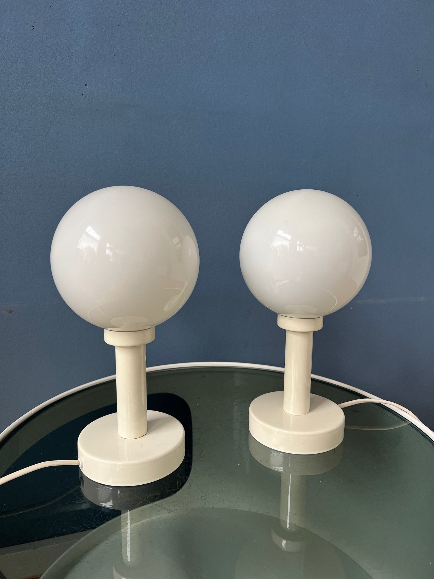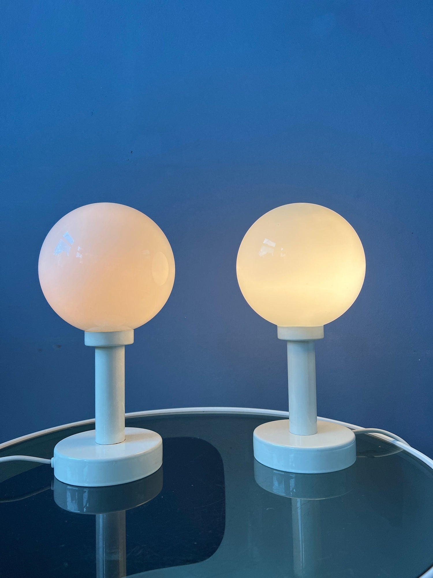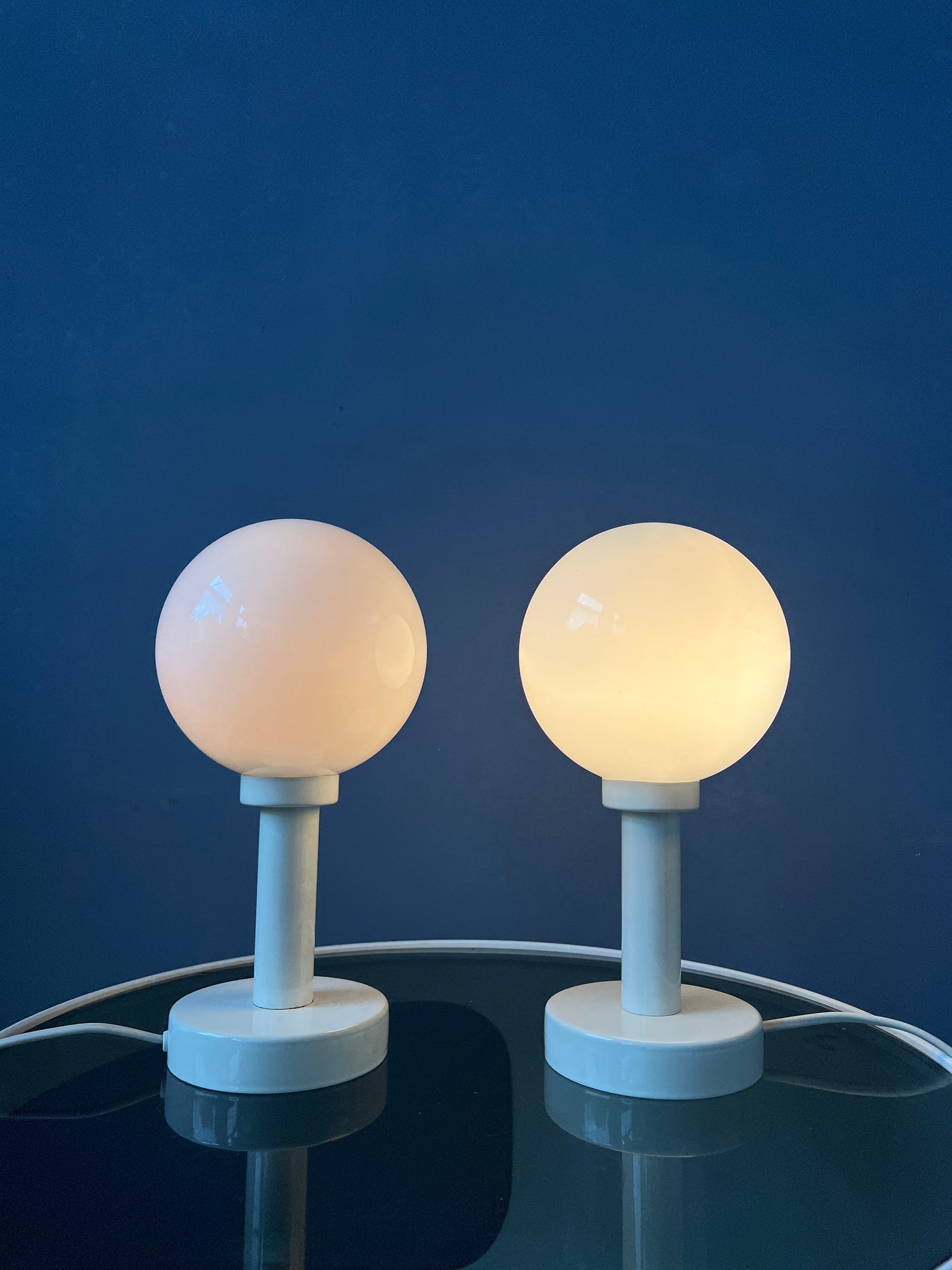 Set (2) of White Space Age Opaline Glass Table Lamps
