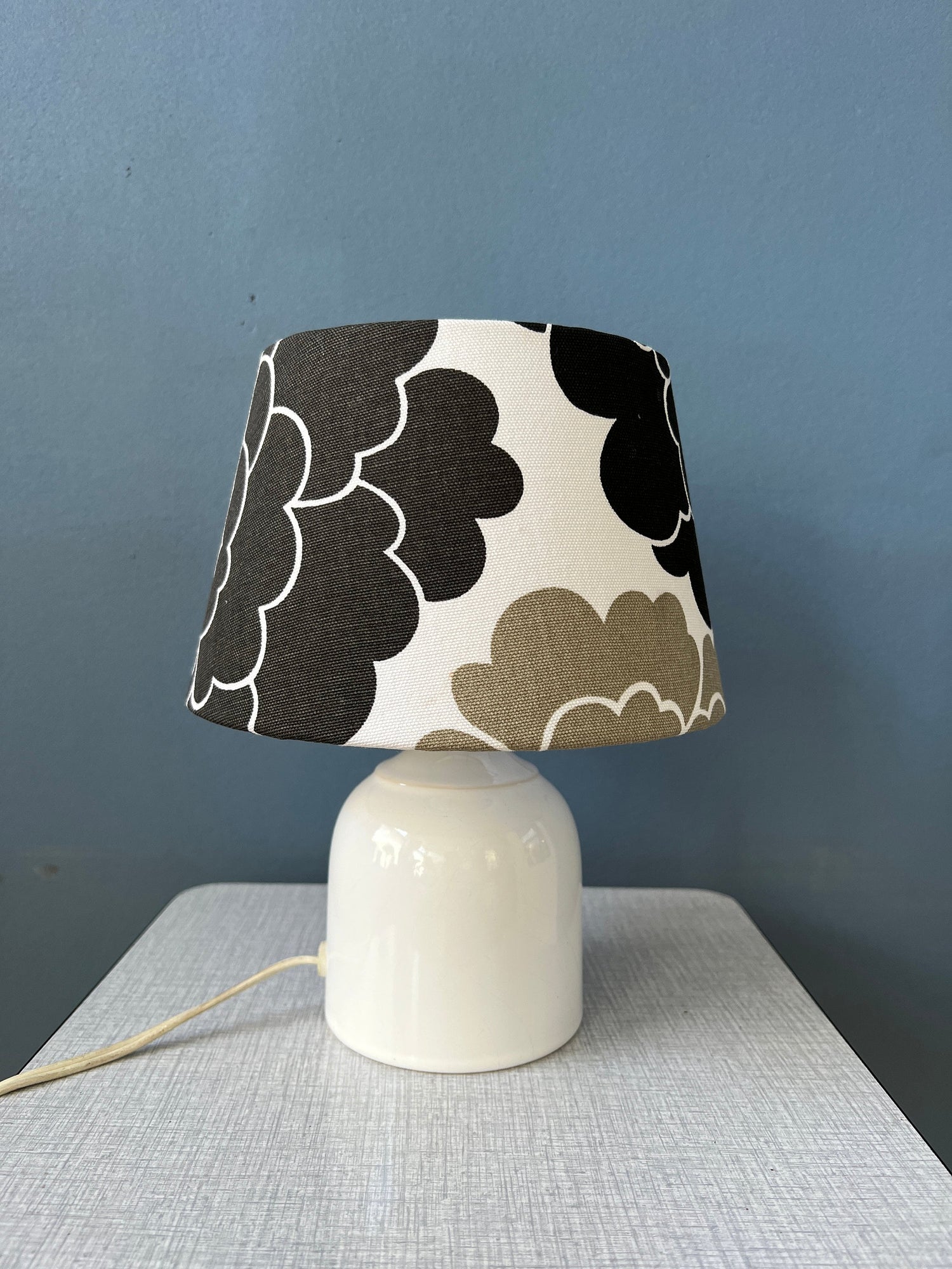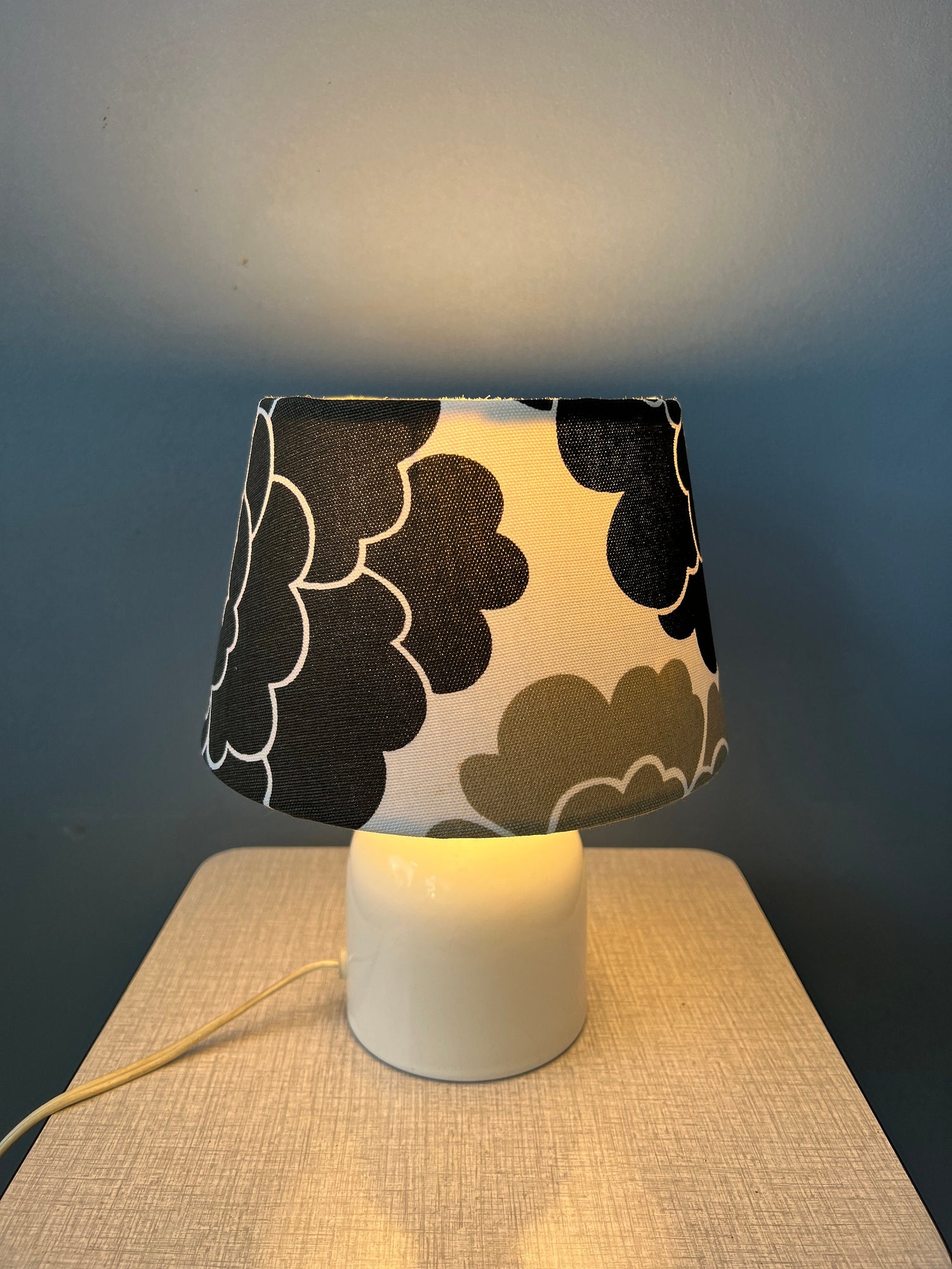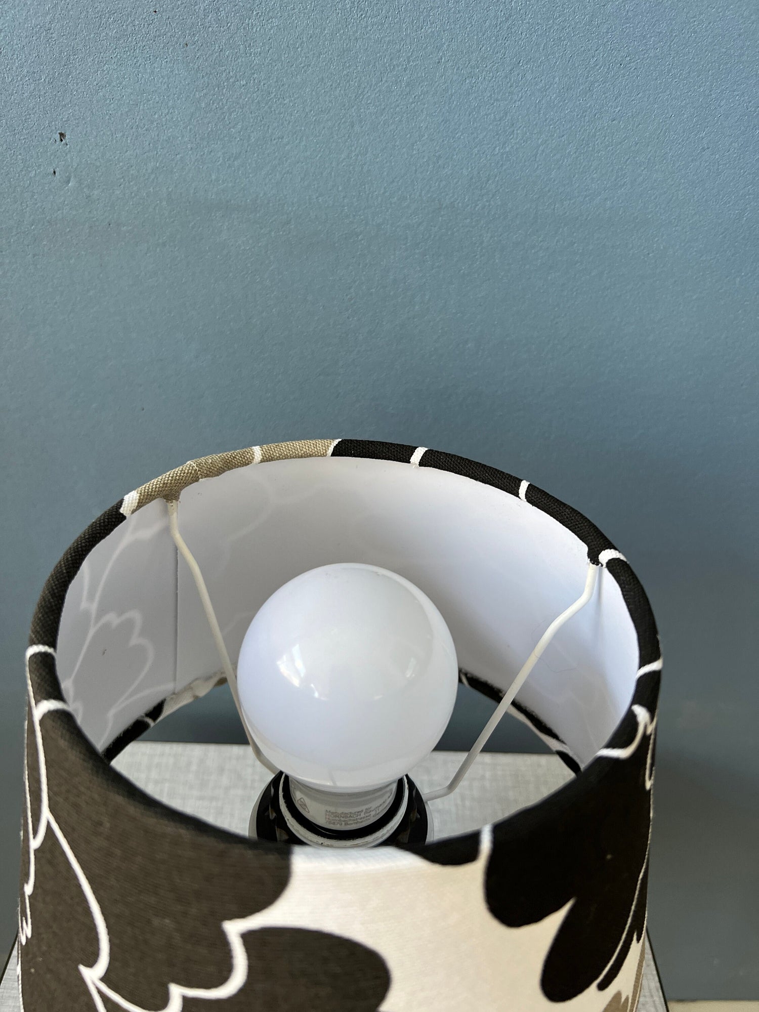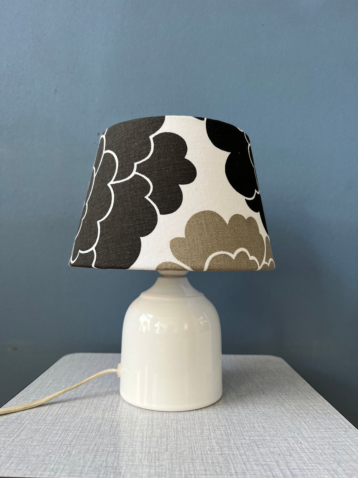 Small Space Age Table Lamp with Porcelain Base and Black and White Flower Shade