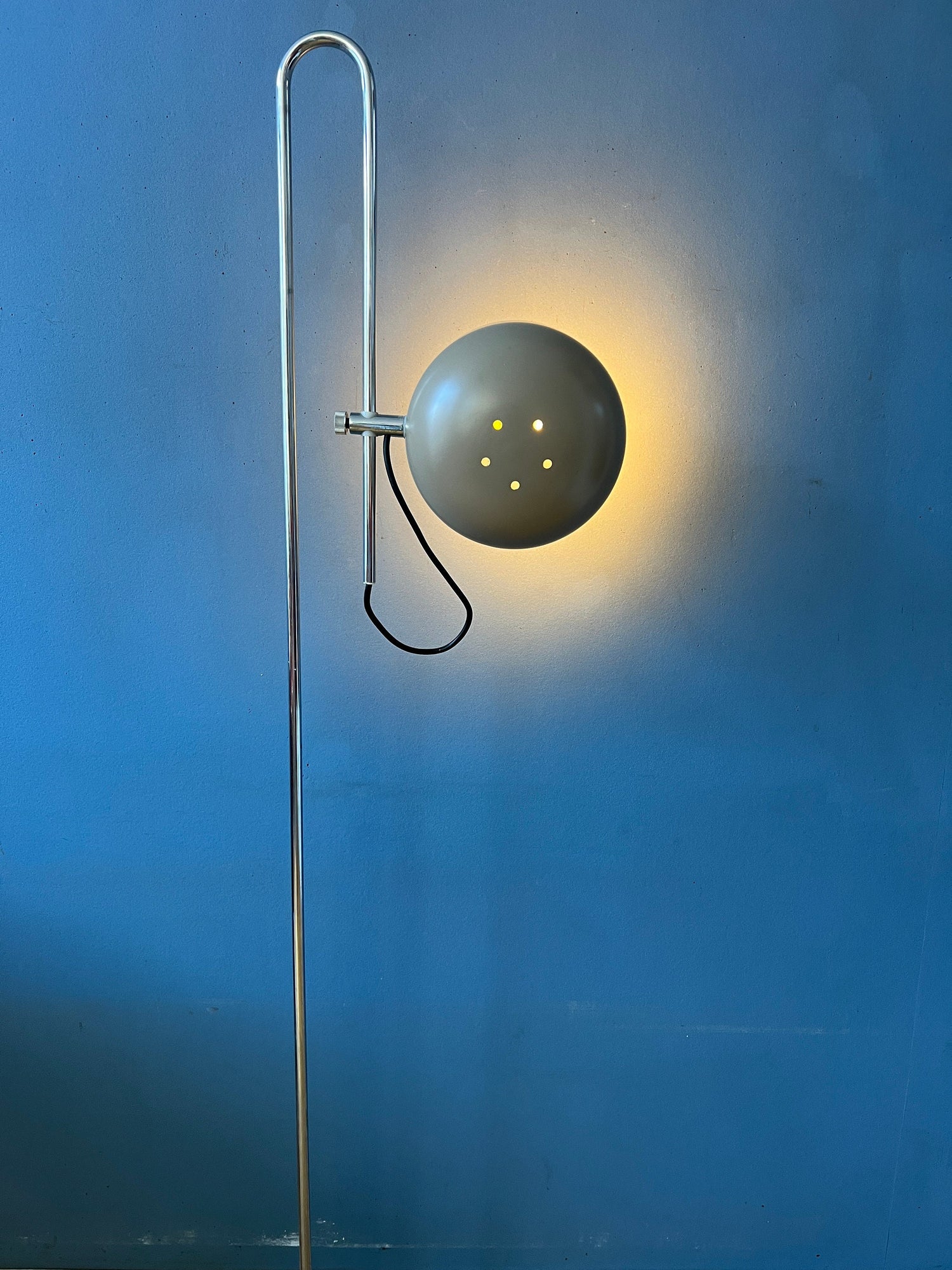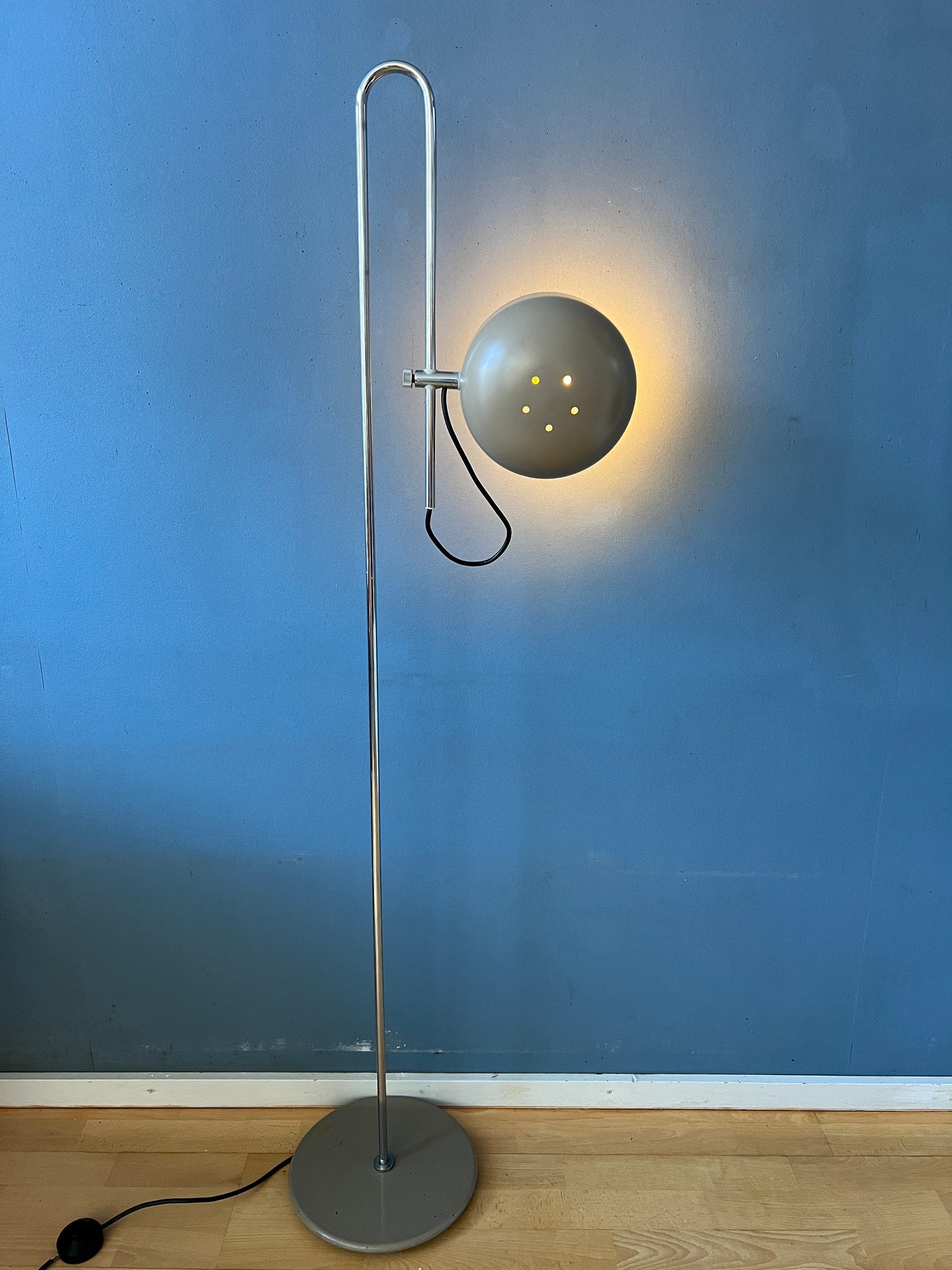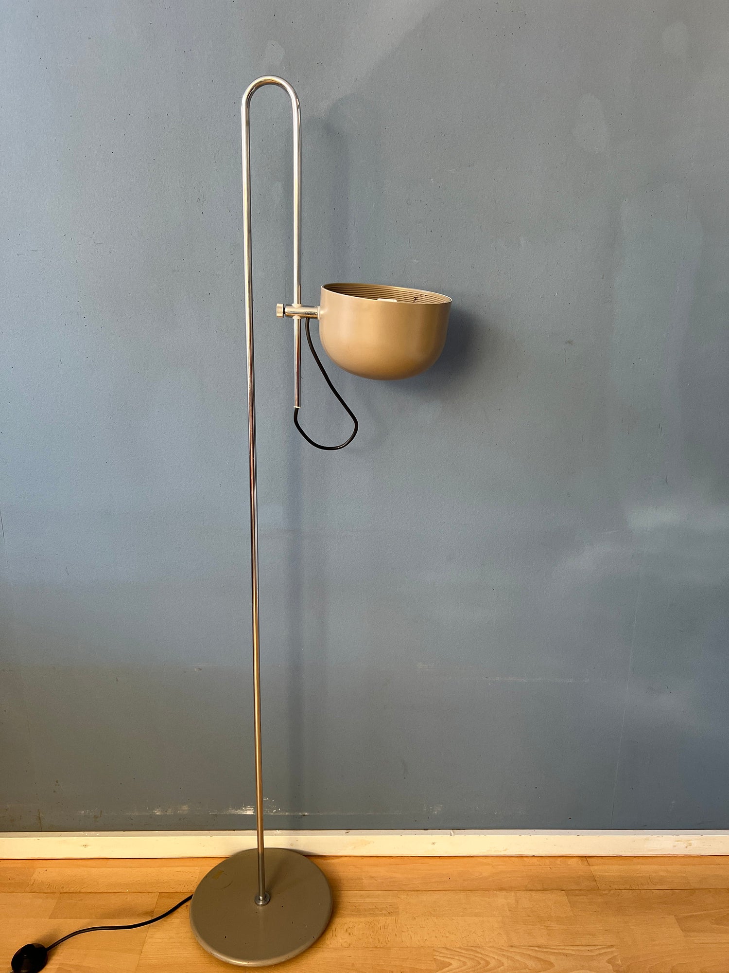 Very rare flexible taupe-like floor lamp. The shade can move up and down the pole. Also the shade itself can be adjusted. The lamp requires two E26/27 lightbulbs and currently has an EU-plug (easily used outside EU with plug-converter).
