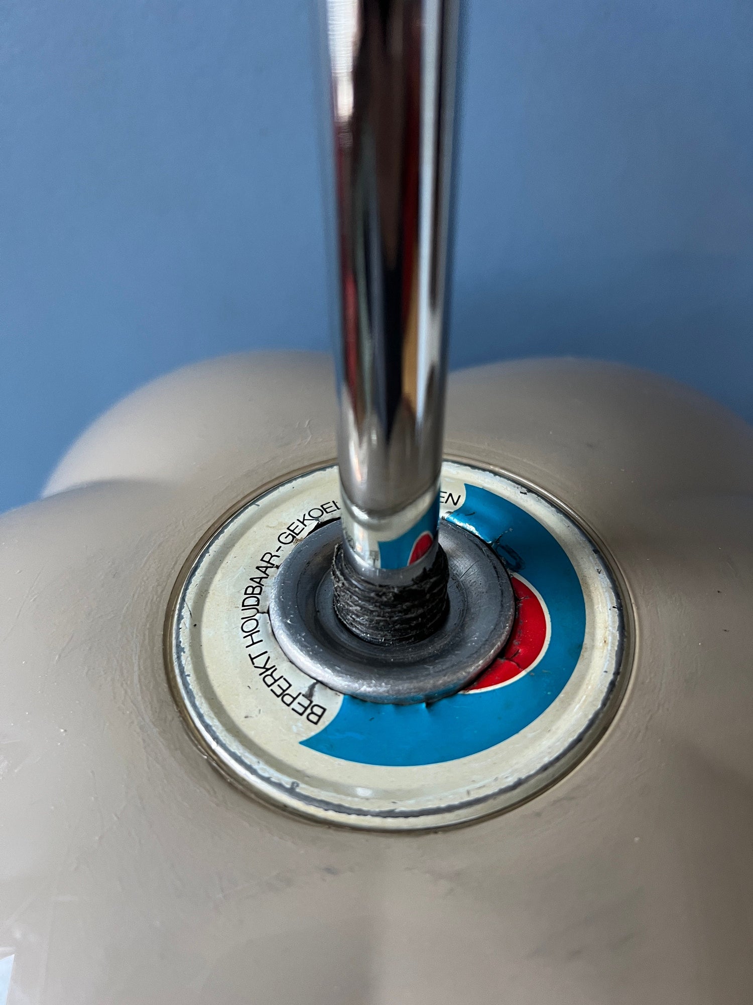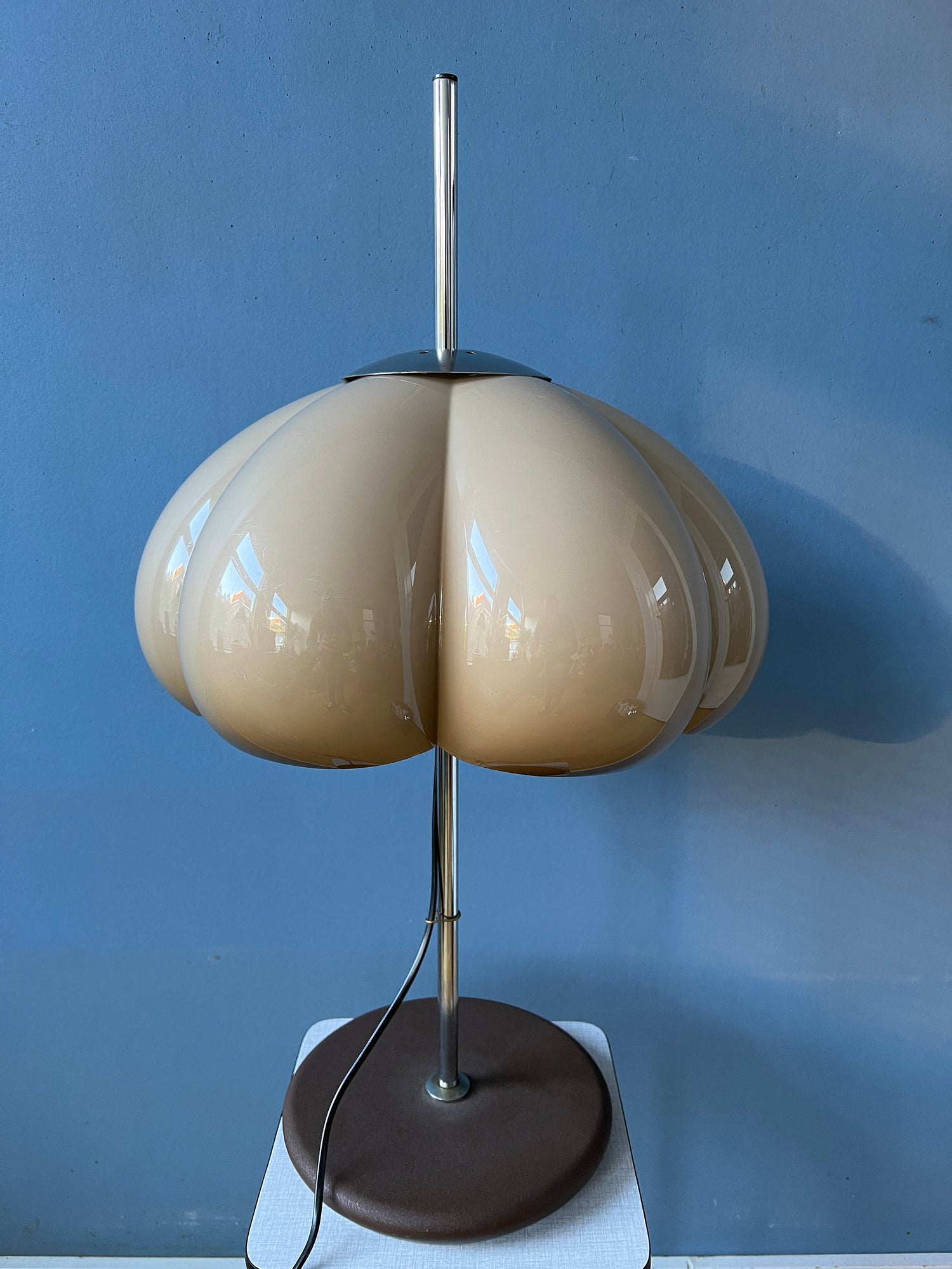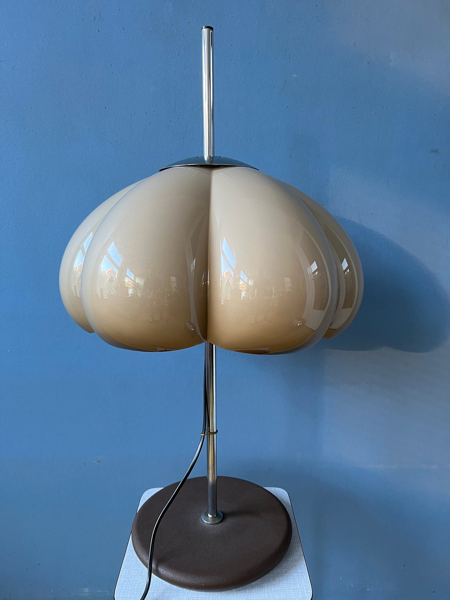 Rare vintage space age flower table lamp by Dijkstra. The shade can move up and down the base. The lamp requires two E27/26 lightbulbs and currently has a EU-plug.