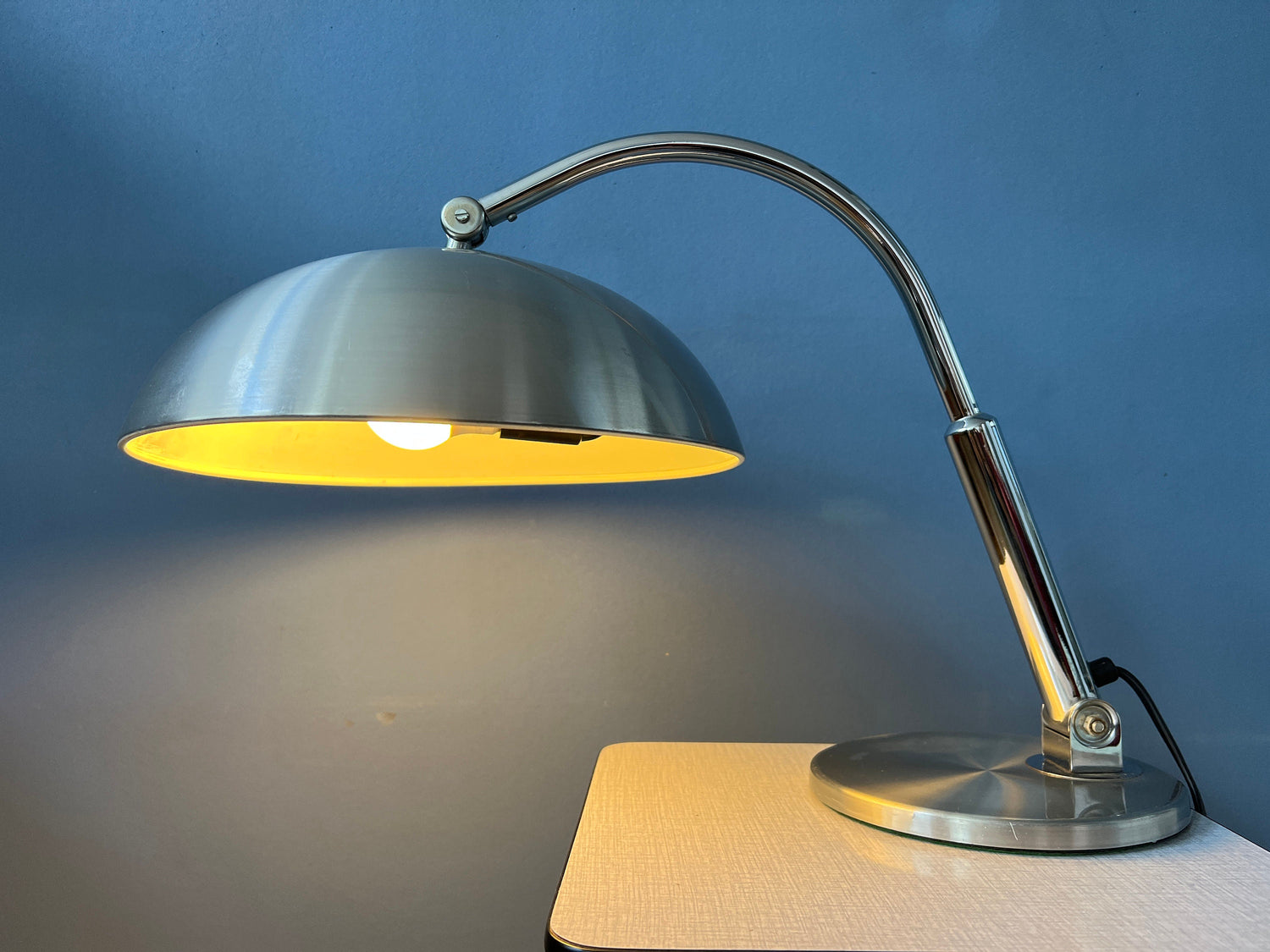 Good. The metal of the shade and frame is still looking good, some vague scratches here and there. Underneath the shade some user-wear is visible, see last picture.
