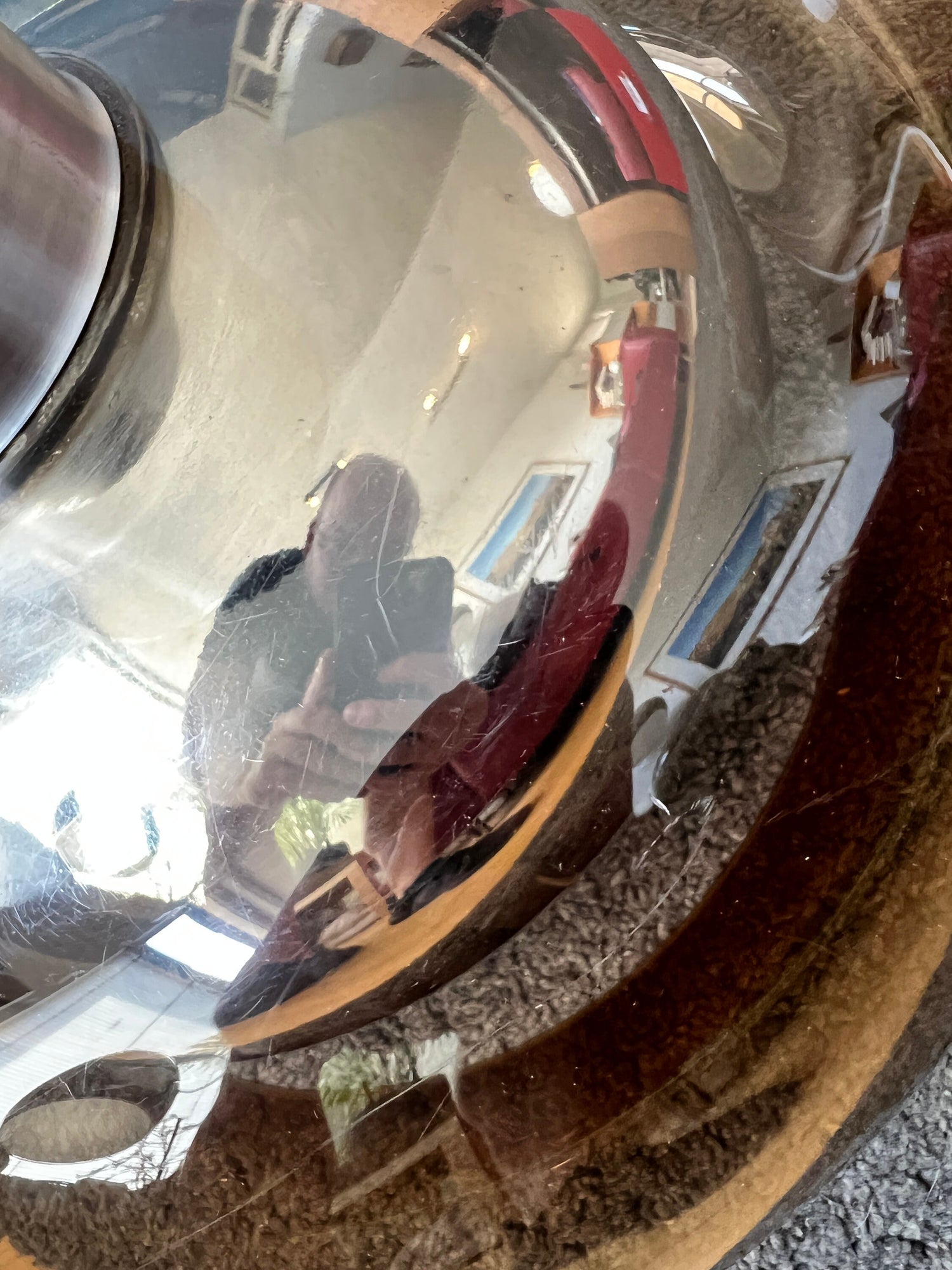 Good. The outer shade has a few small scratches, see last picture. The metal inner shade has vague scratches in its inner part, see last pictures.