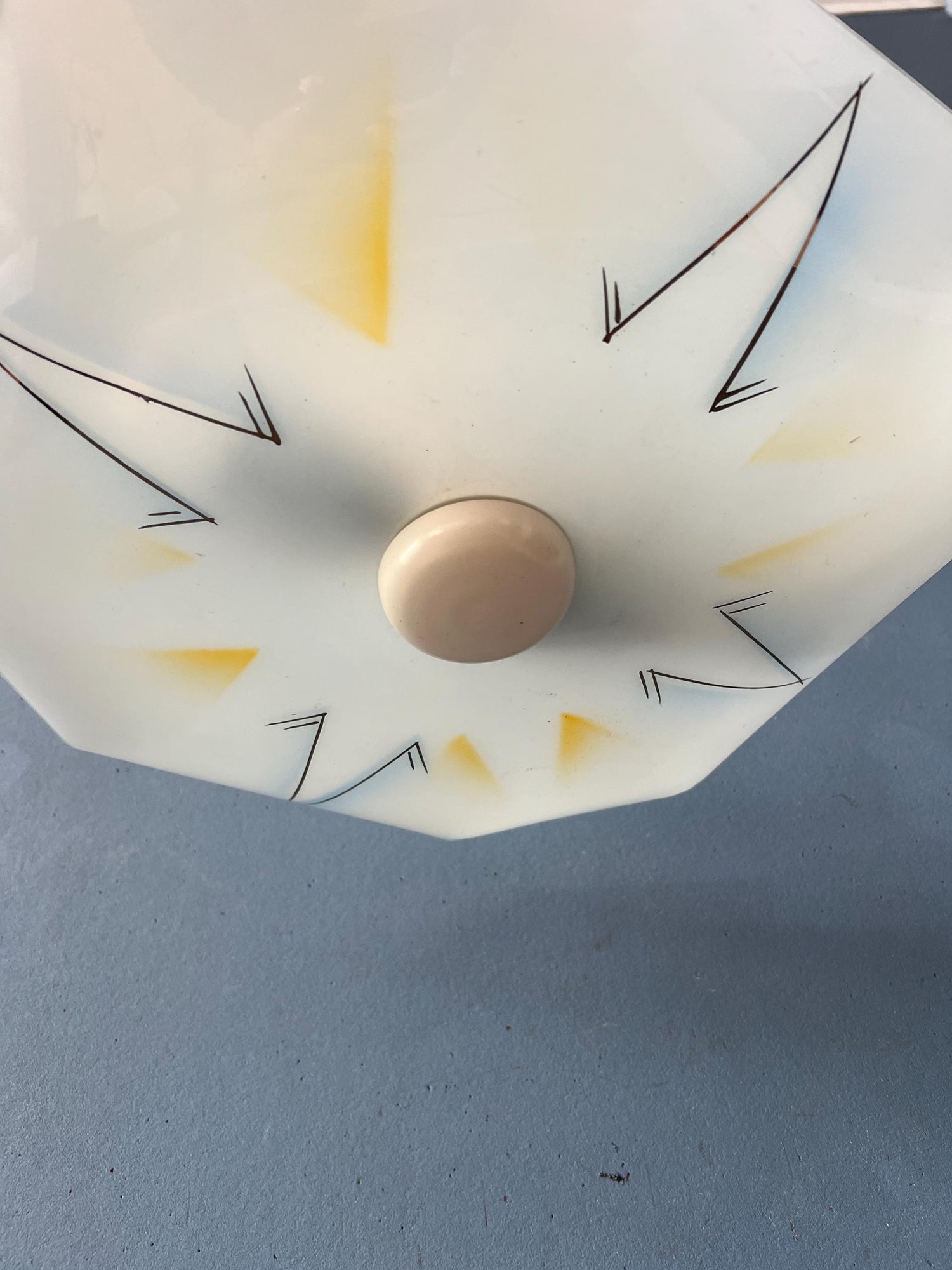 Vintage Mid Century Flush Mount Glass Ceiling Lamp