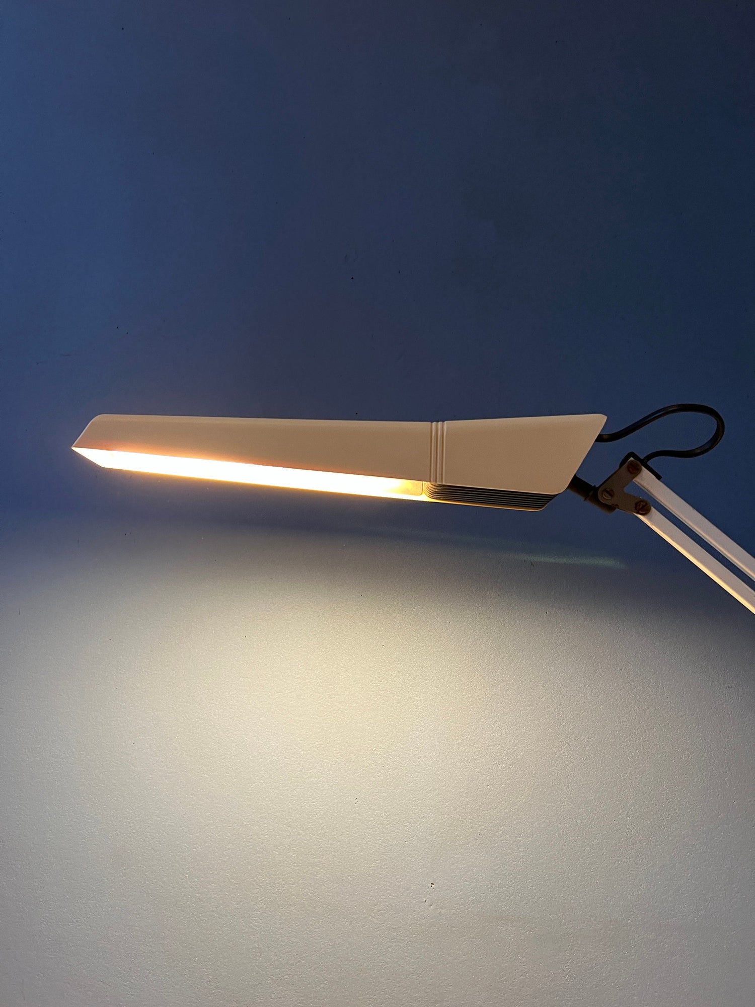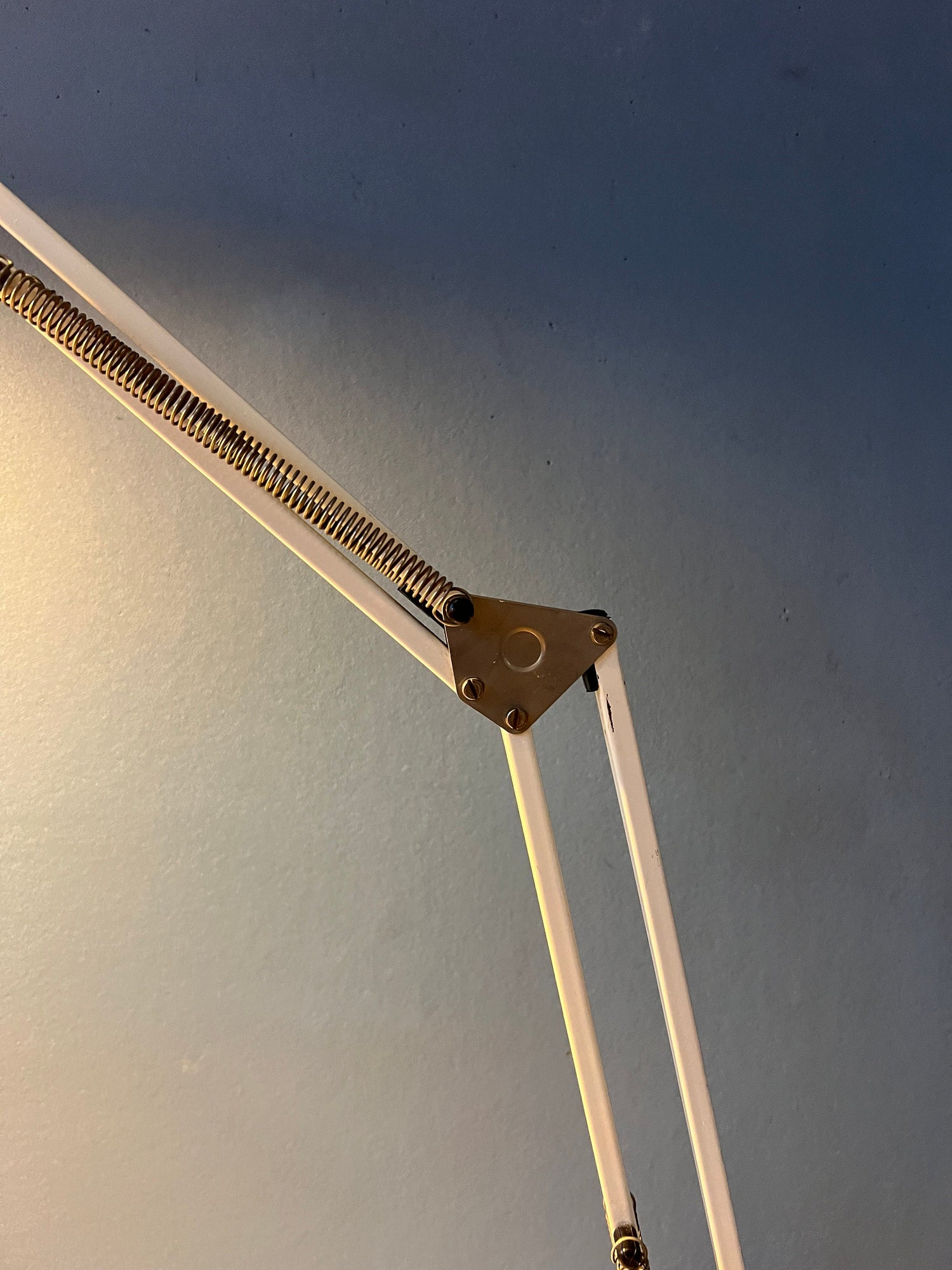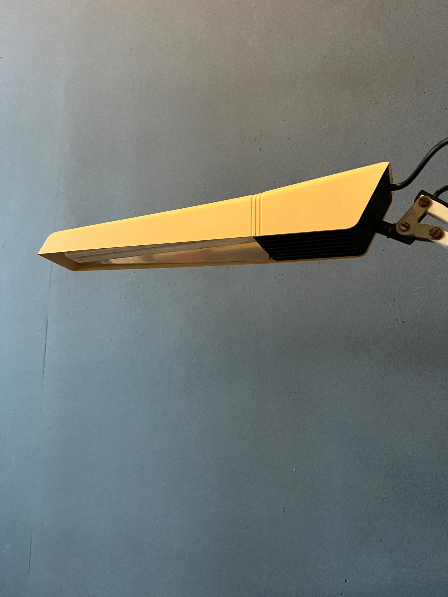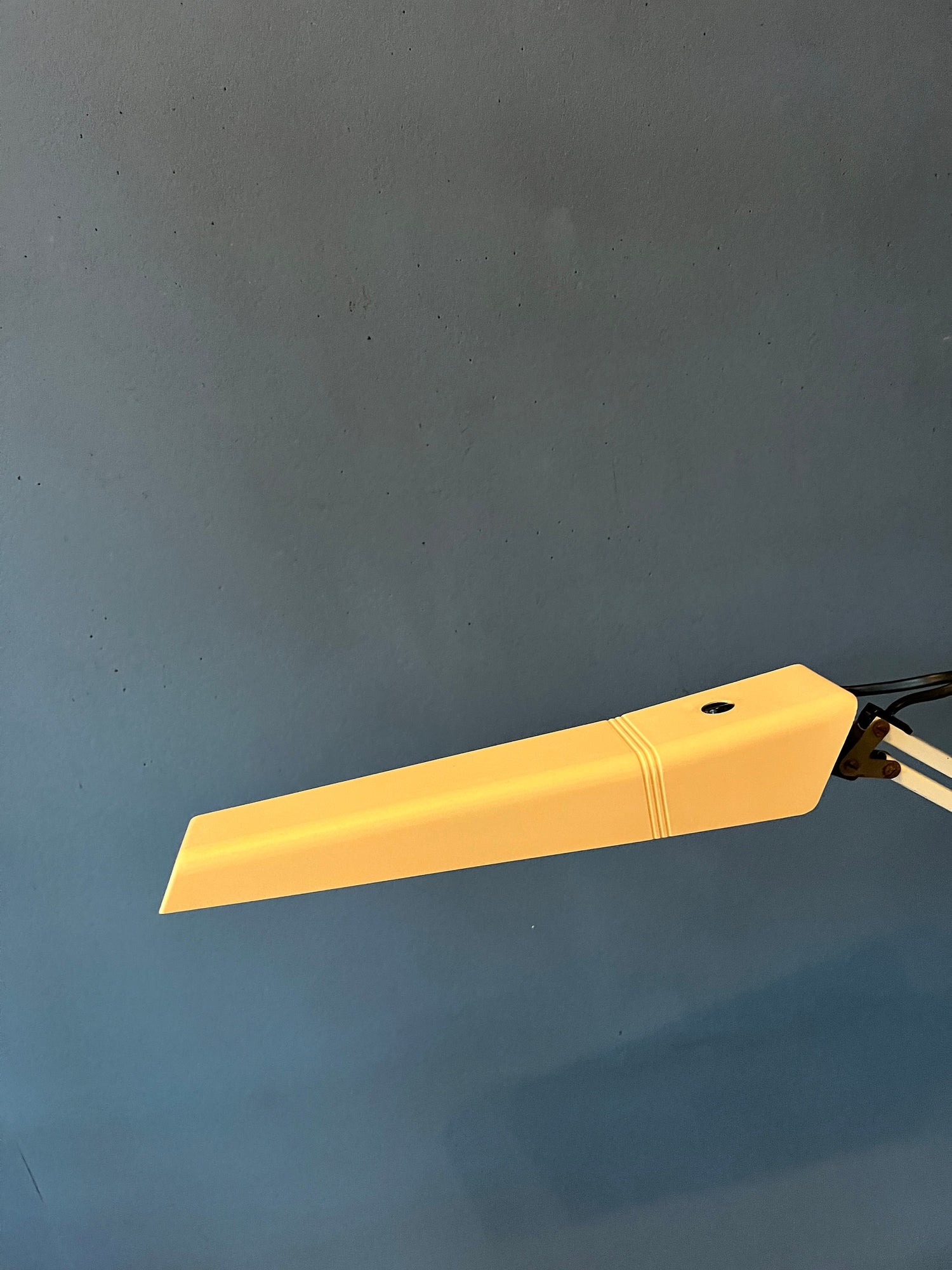 Vintage office desk lamp with clamp mechanism. The arm be adjusted in any way desirable. Also the shade it self can move. The lamp requires an E27/26 bulb and currently has an EU-plug (easily used outside EU with plug converter).