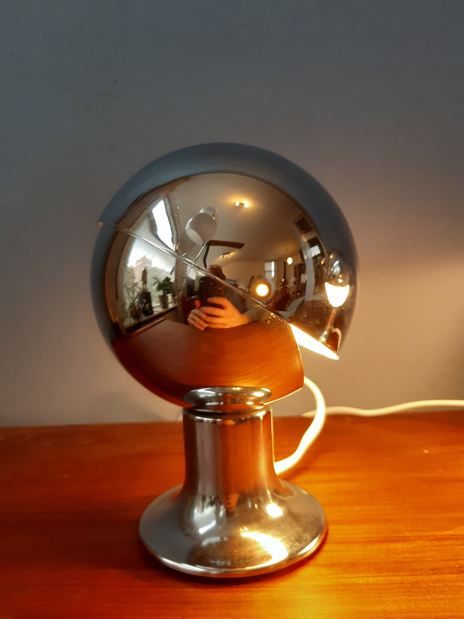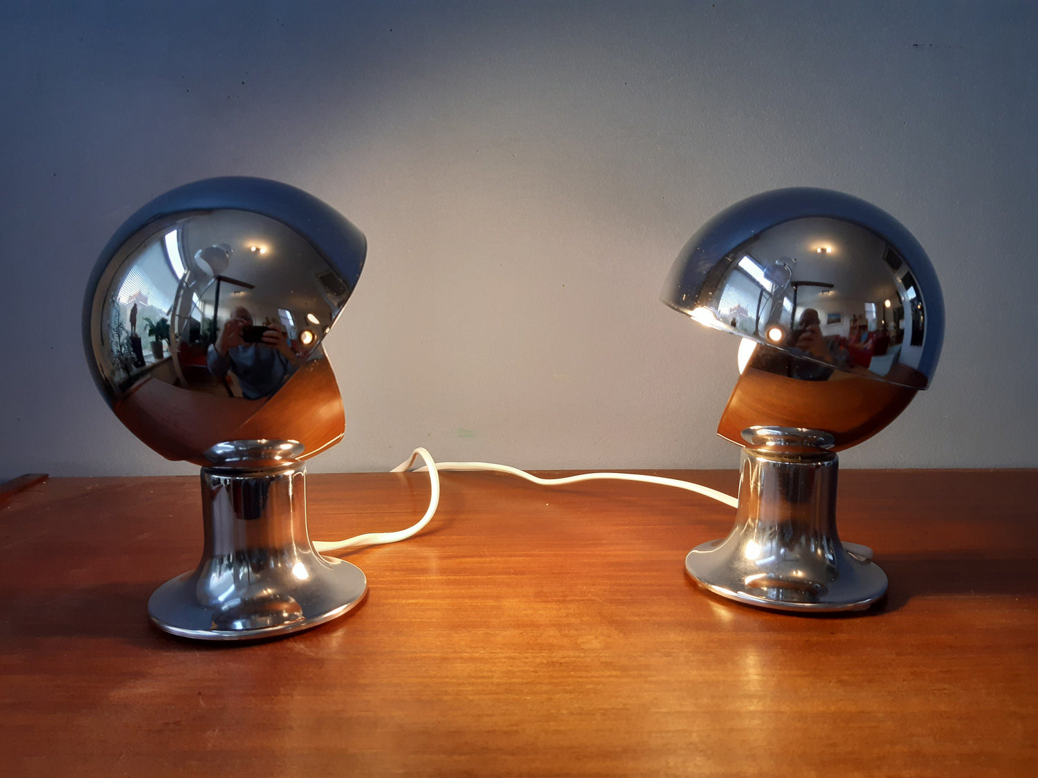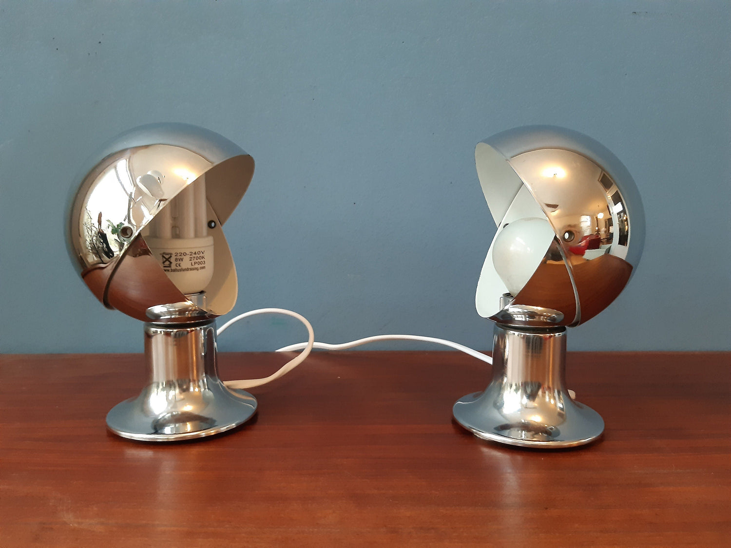 Very good. The chrome is in good shape, a few small scratches here and there but nothing particular that we can capture on camera. Underneath the base of the lamps there is a small rusty dot (see last pictures).