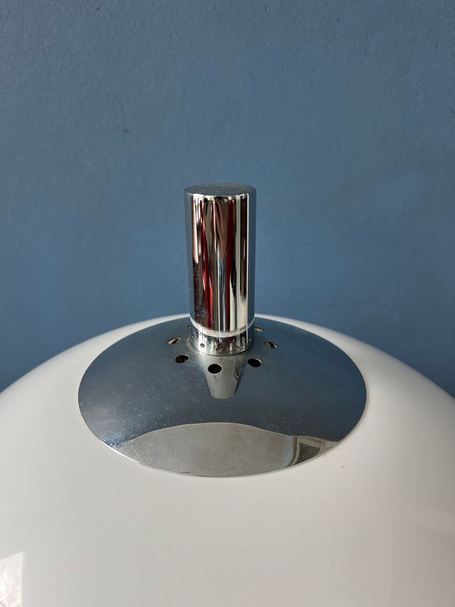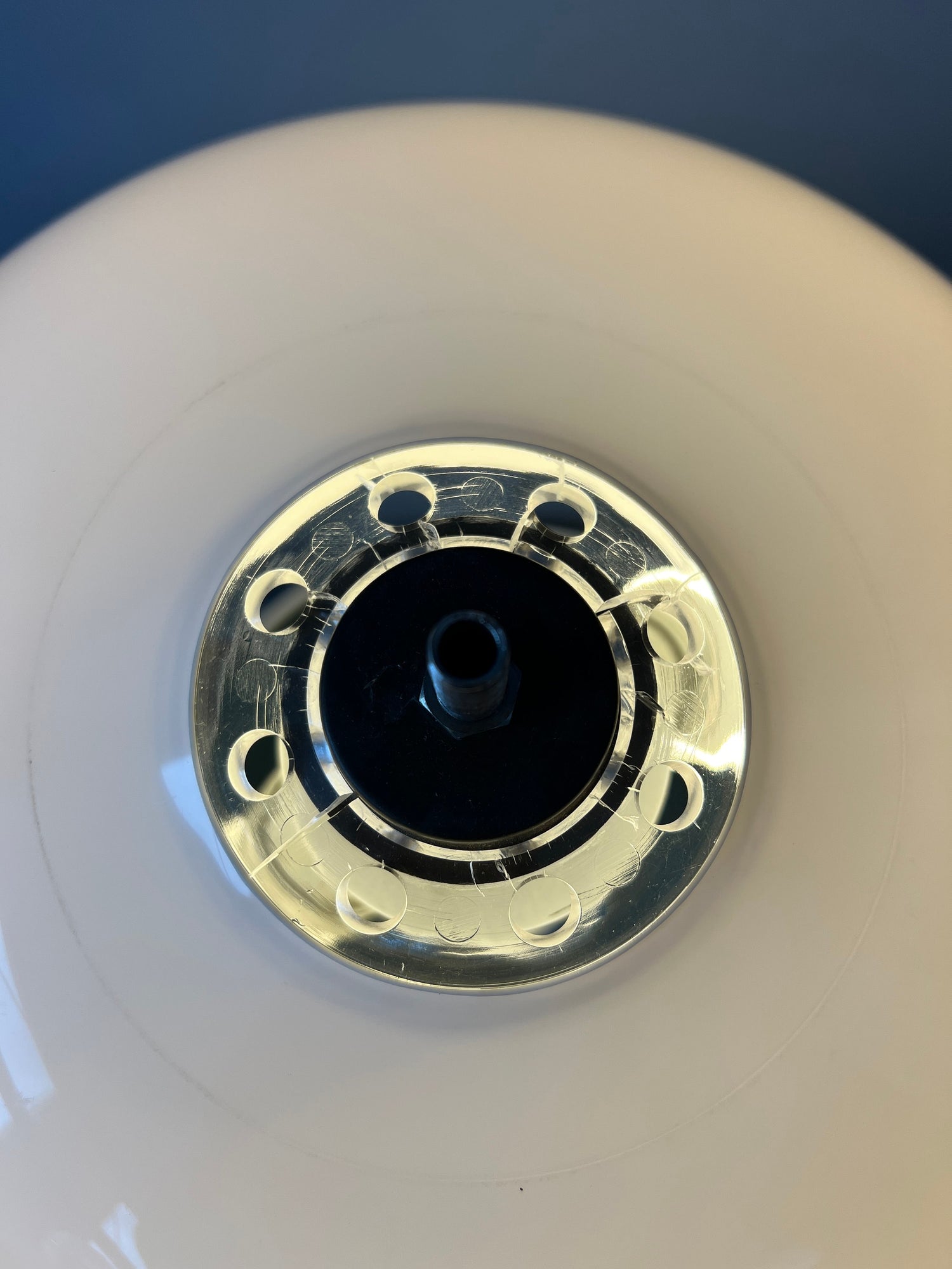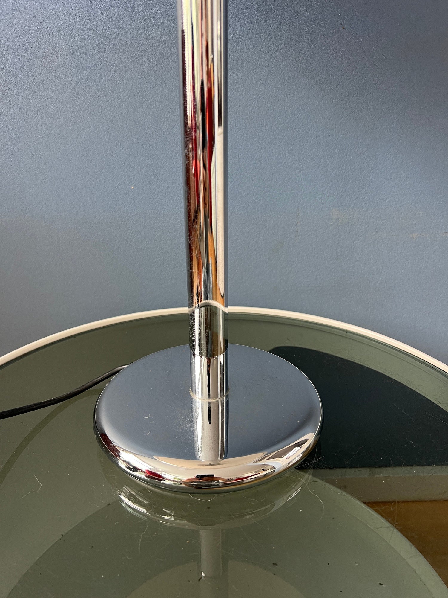 Very good. The lamp is still in great condition. Underneath the chrome top cap some common slight heat damage is visible to the transparant plexiglass ring, see last picture.