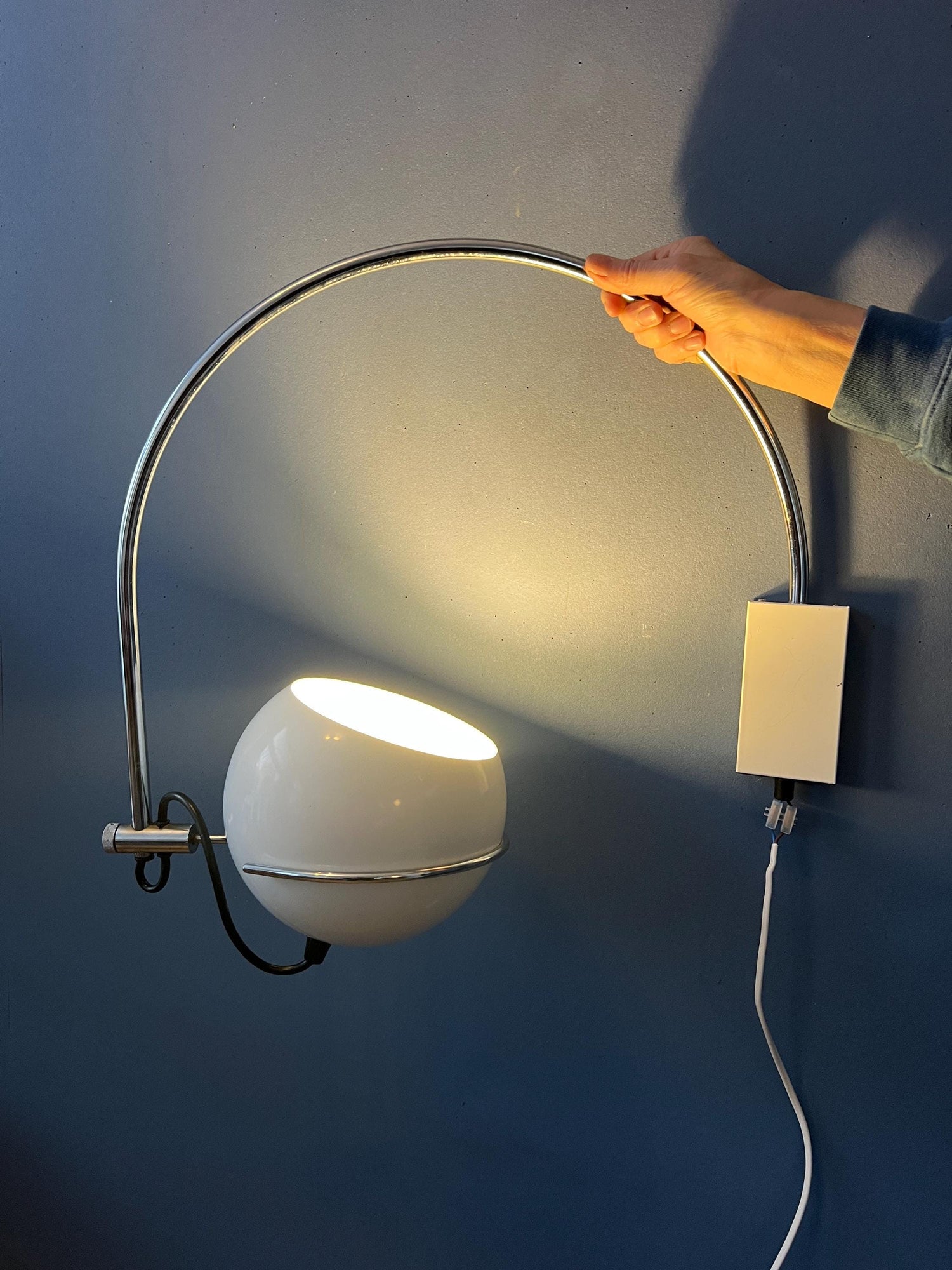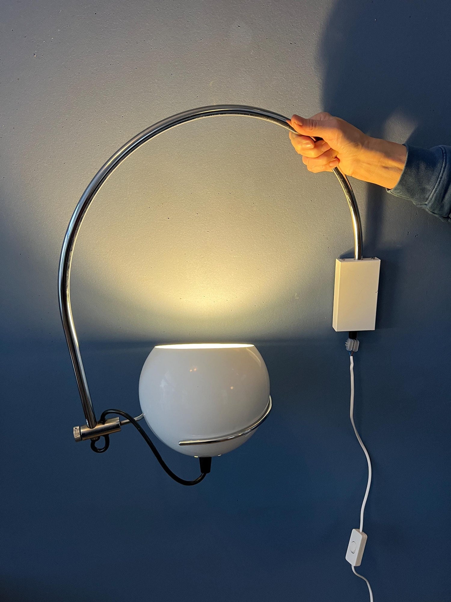 White Vintage Space Age Arc Wall Lamp by GEPO