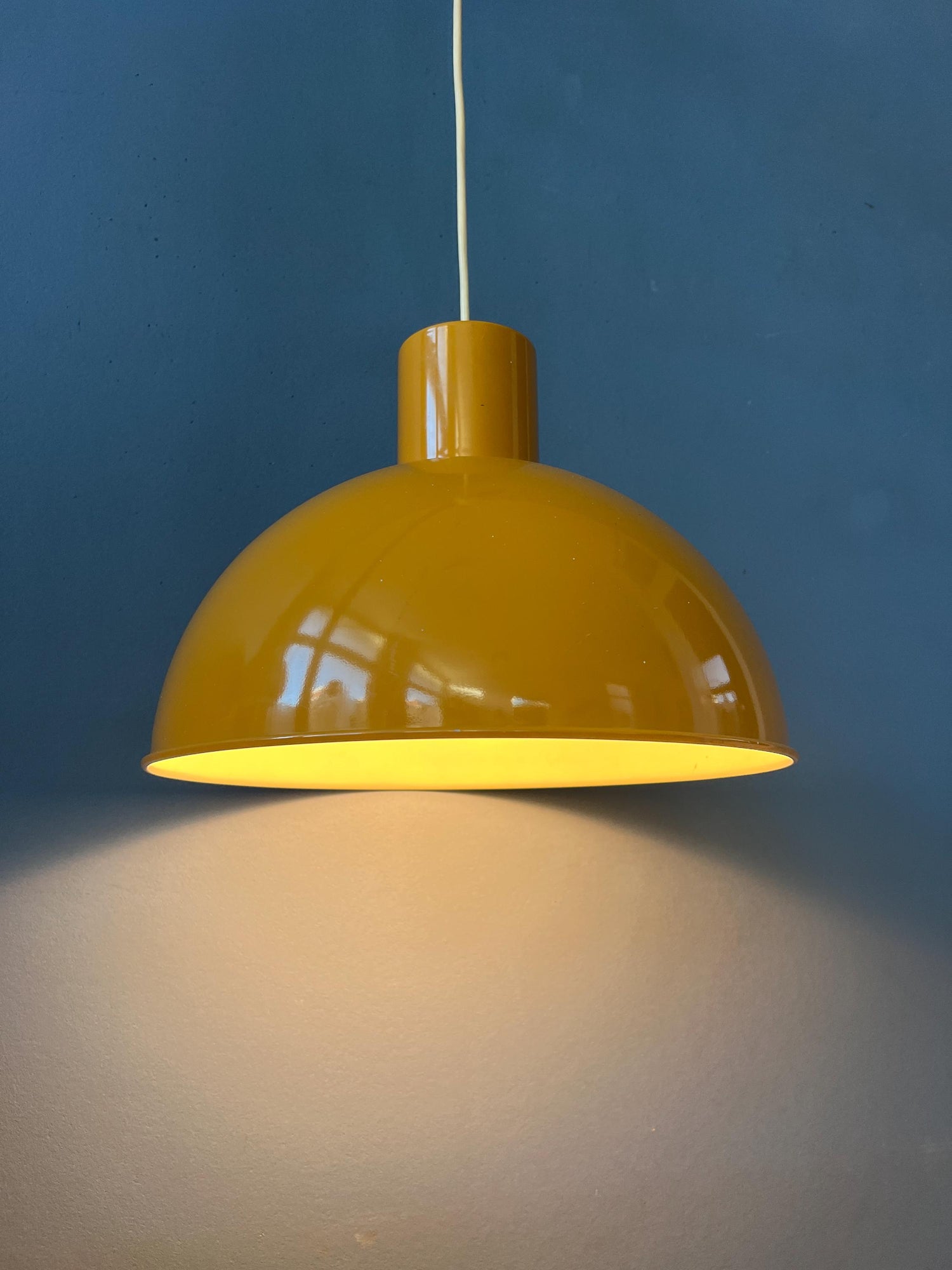 Yellow Enamel Pendant Lamp by Joe Hammerborg for Fog & Mørup